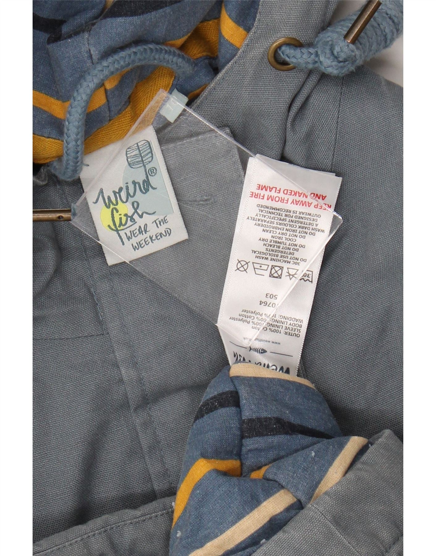 Weird Fish Womens Hooded Parka Jacket UK 10 Small Blue Cotton