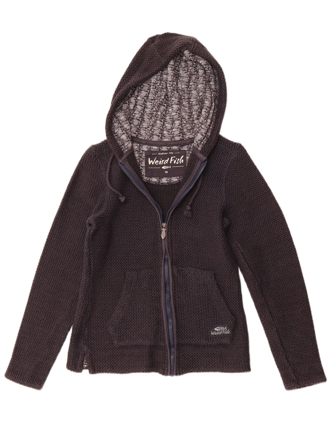 WEIRD FISH Womens Zip Hoodie Sweater UK 10 Small Navy Blue Cotton