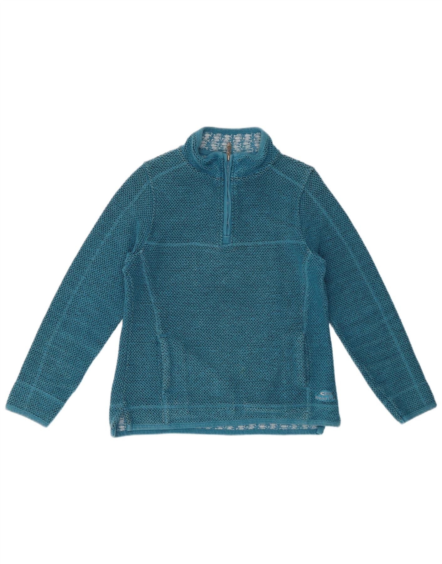 WEIRD FISH Womens Zip Neck Sweatshirt Jumper UK 12 Medium Blue Cotton