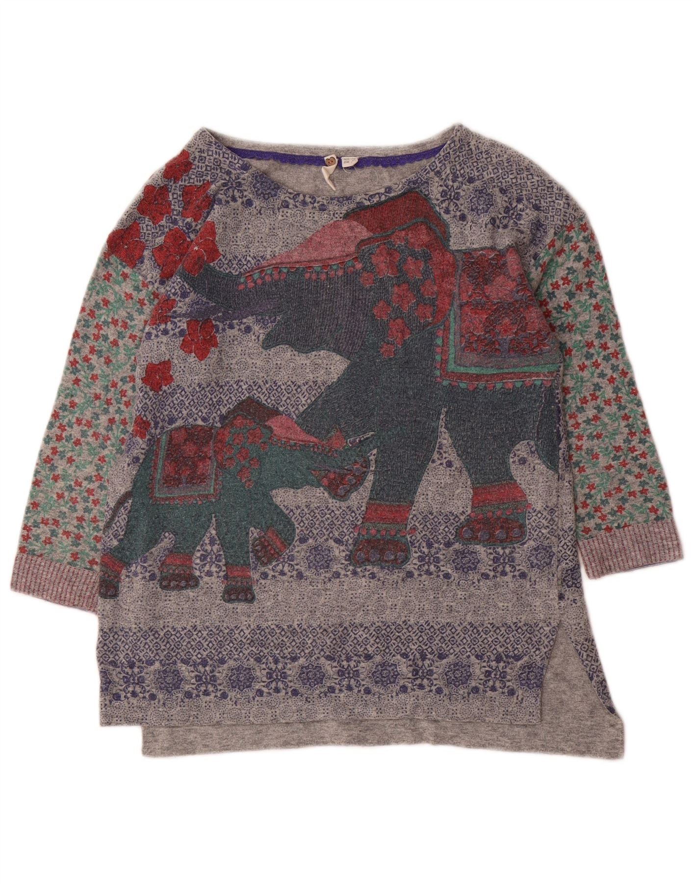WHITE STUFF Womens Graphic Boat Neck Jumper Sweater UK 10 Small Grey