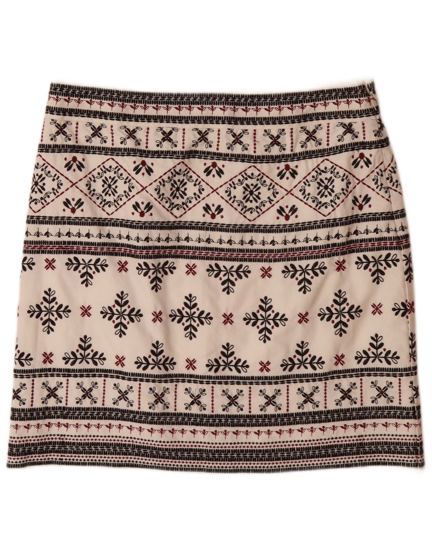 WHITE STUFF Womens Mini Skirt UK 10 Small W32 Off White Fair Isle Cotton