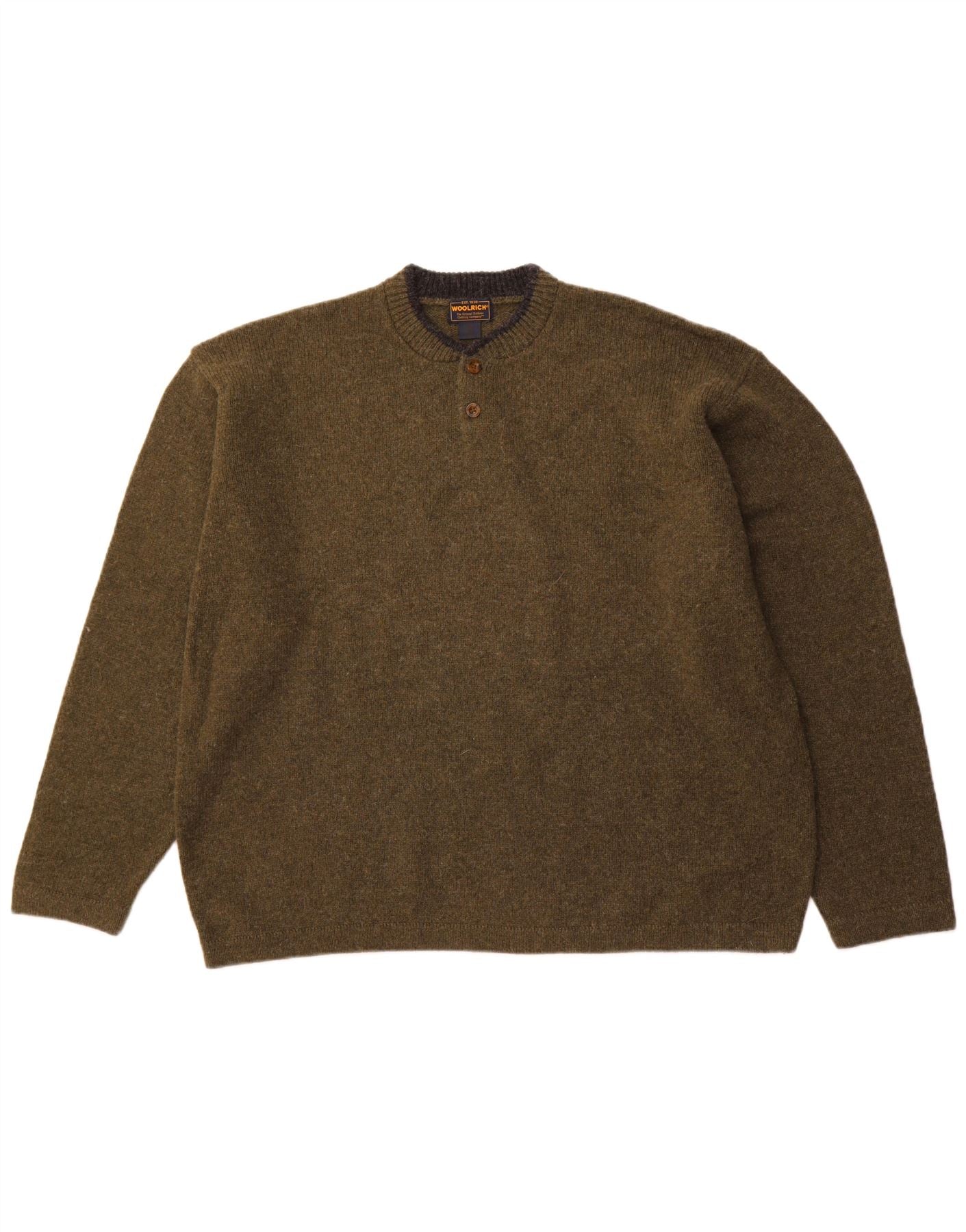 WOOLRICH Mens Button Neck Jumper Sweater 2XL Khaki Wool