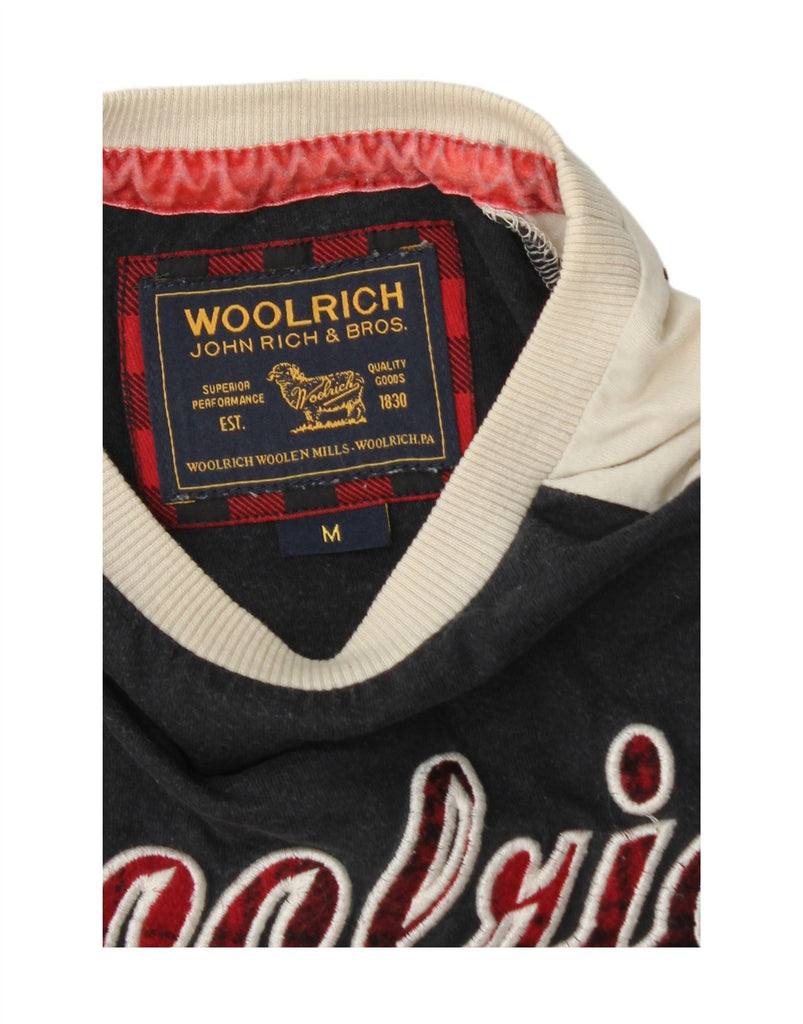 WOOLRICH Mens Graphic Top Long Sleeve Medium Navy Blue Colourblock