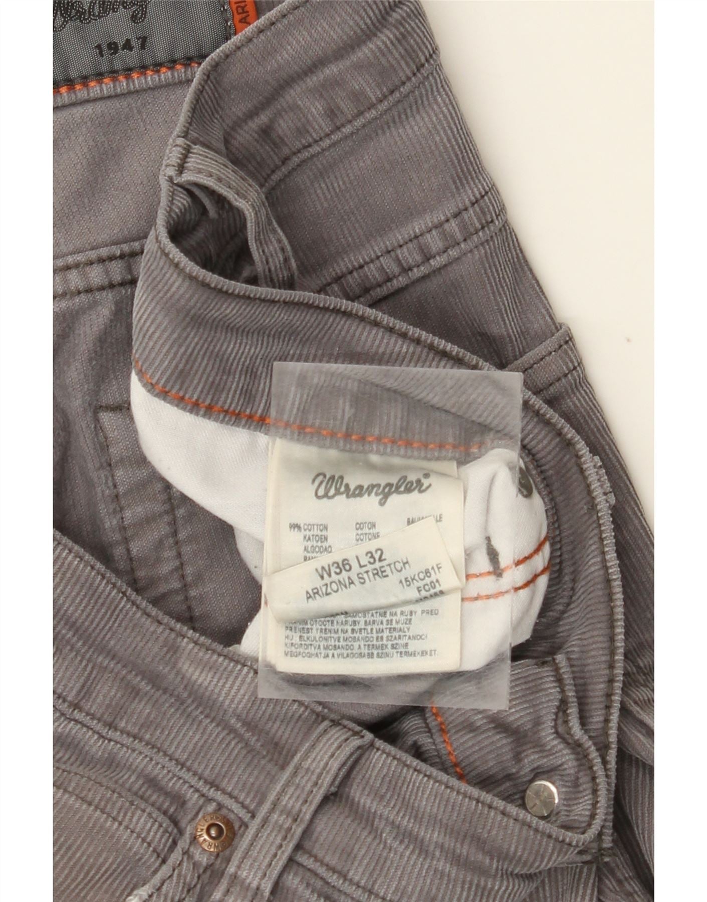 WRANGLER Mens Arizona Stretch Straight Corduroy Trousers W36 L32 Grey