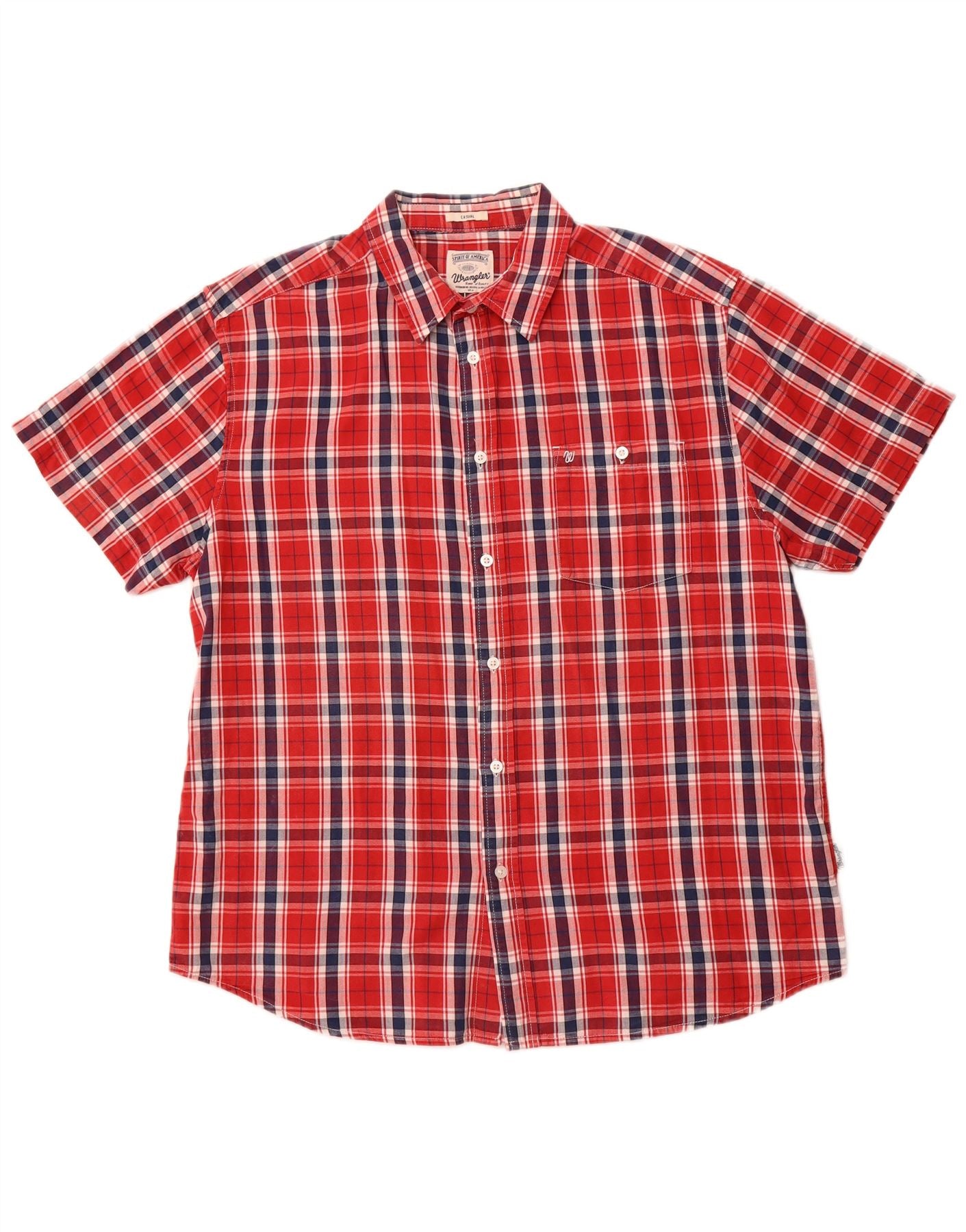 WRANGLER Mens Casual Fit Short Sleeve Shirt XL Red Check Cotton