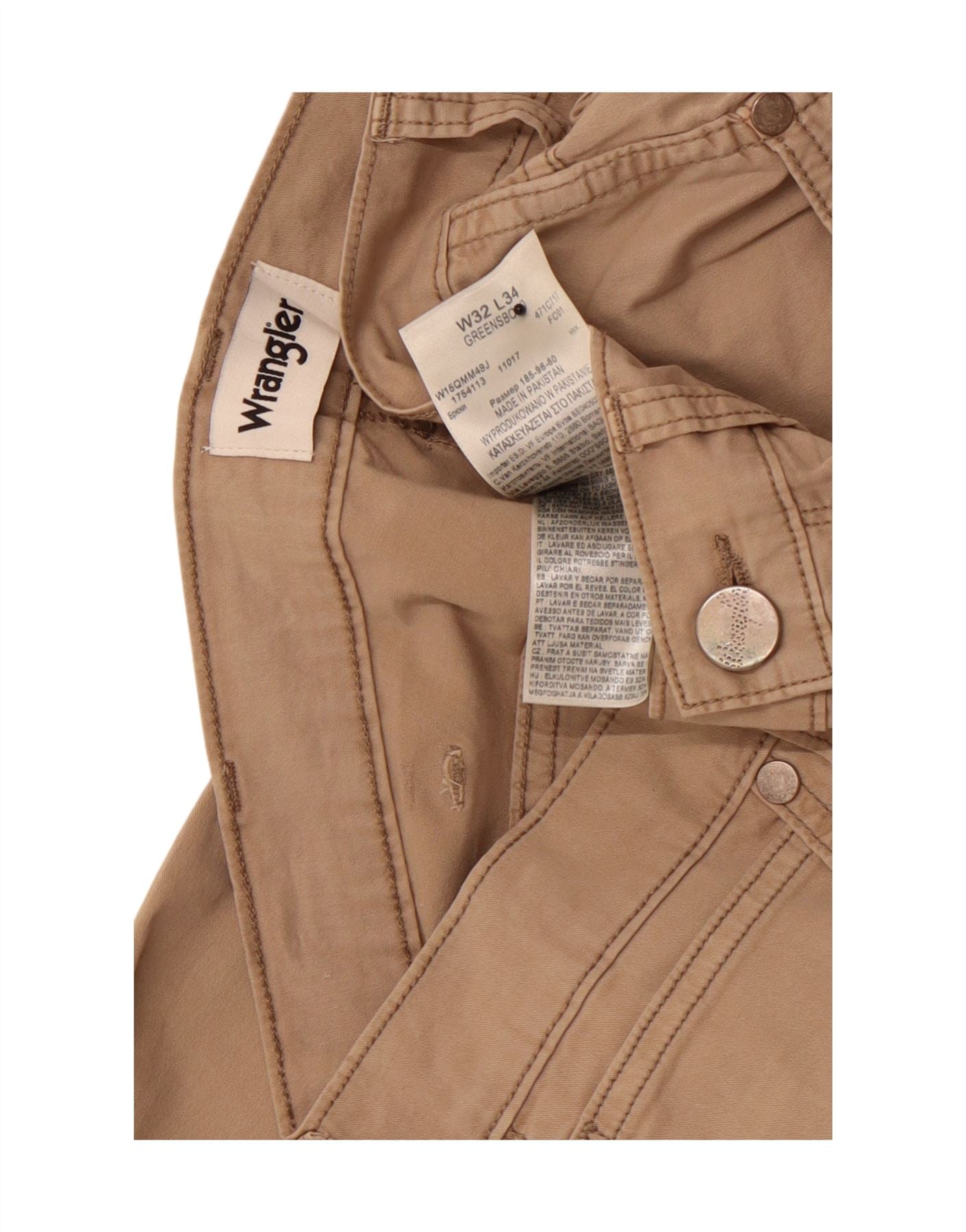 WRANGLER Mens Greensboro Straight Casual Trousers W32 L34 Beige Cotton