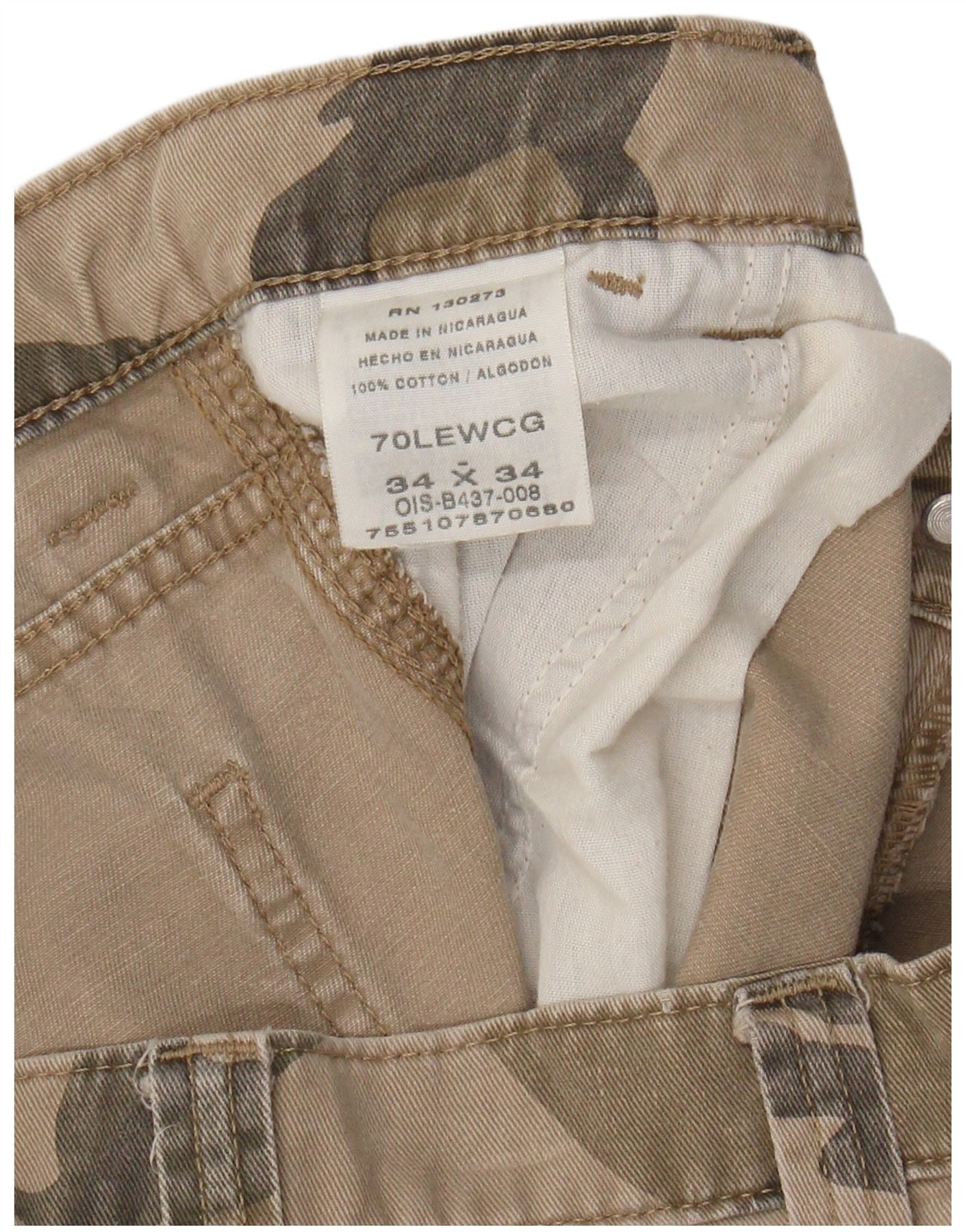 WRANGLER Mens Straight Cargo Trousers W34 L34 Beige Camouflage Cotton