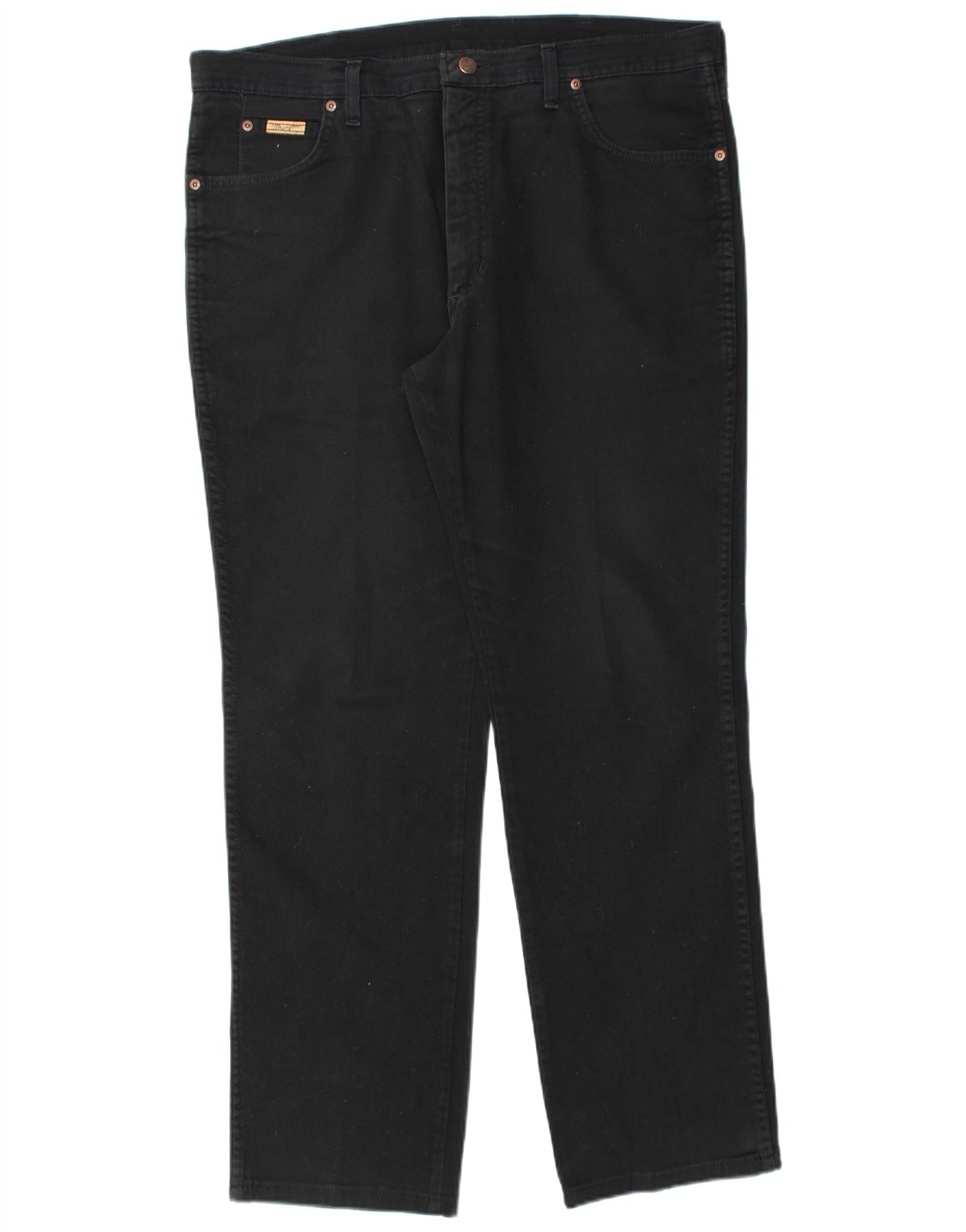 WRANGLER Mens Texas Straight Jeans W38 L32 Black Cotton