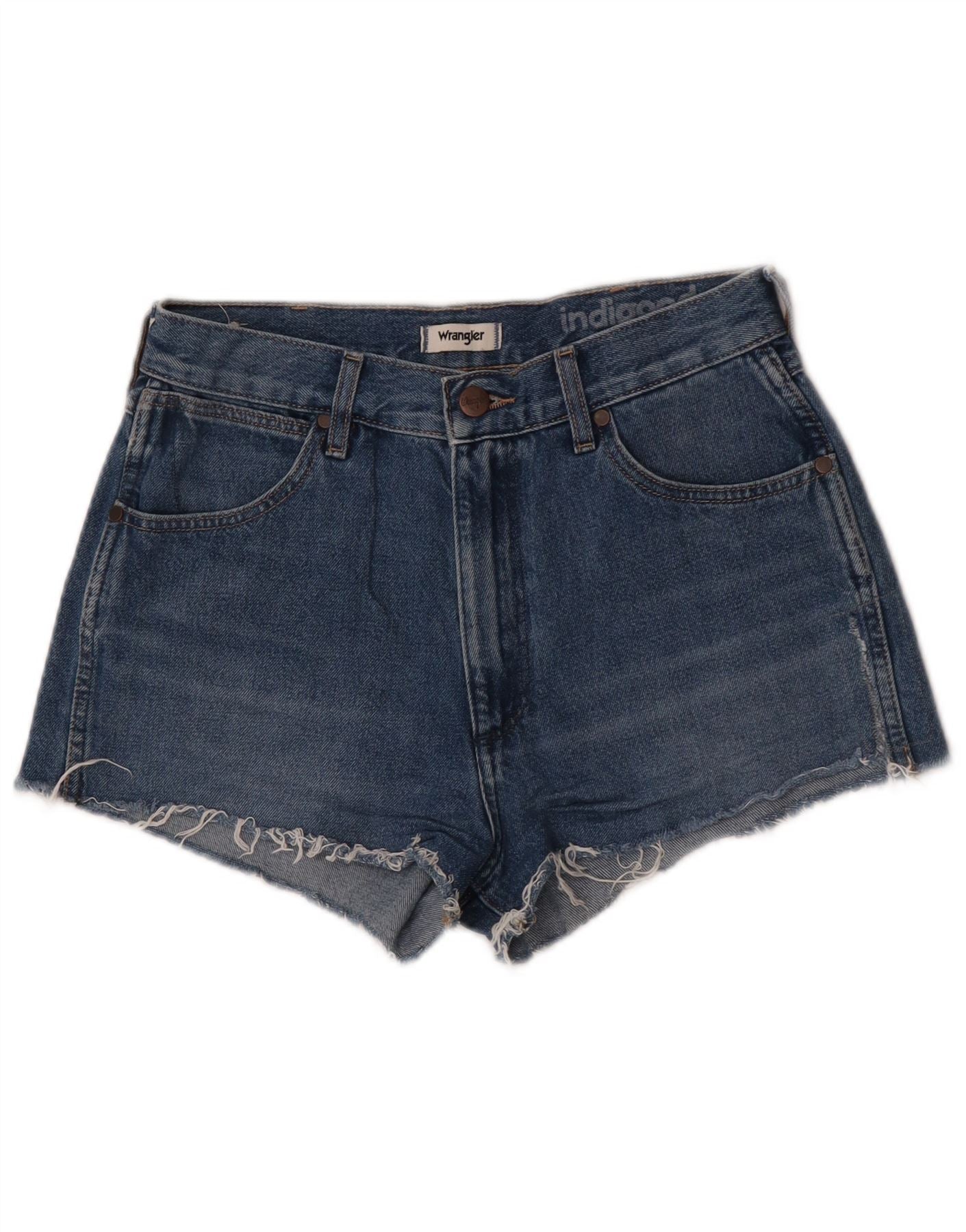 Wrangler Womens Indigo Denim Shorts W27 Small Blue Cotton