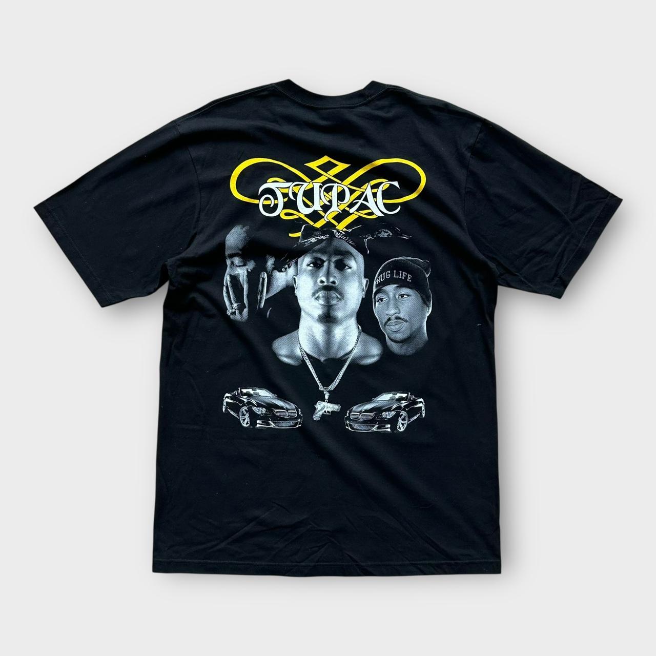 Early 2000s Tupac spell out graphic tee in black with print on the chest and front