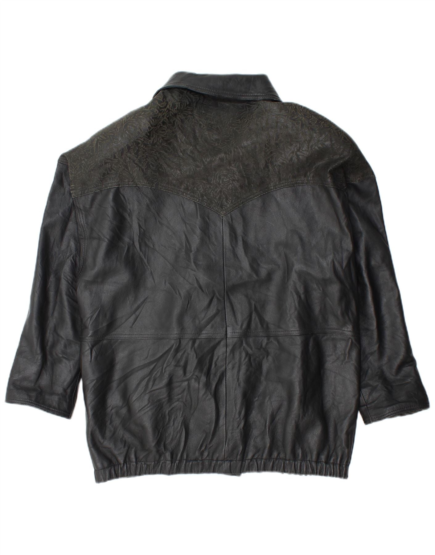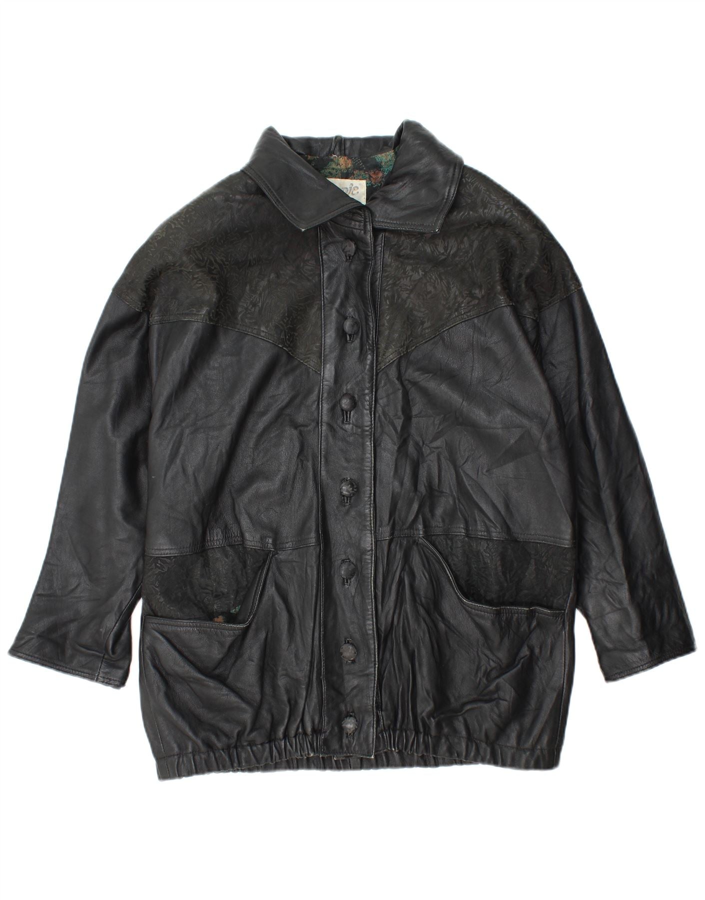 YUPPIE Womens Oversized Leather Jacket UK 18 XL Black Floral