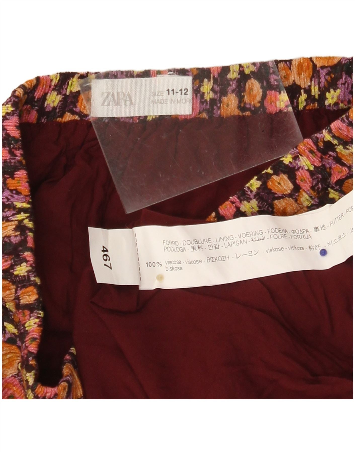 ZARA Girls A-Line Skirt 11-12 Years W20 Brown Floral Viscose