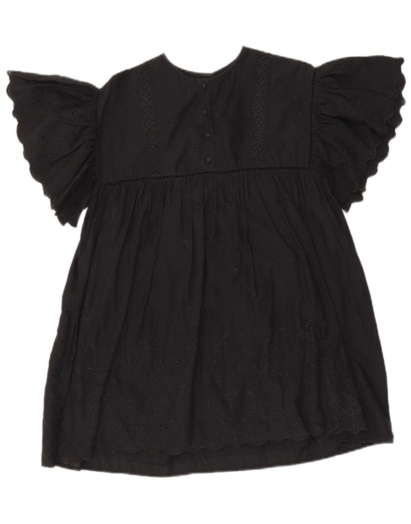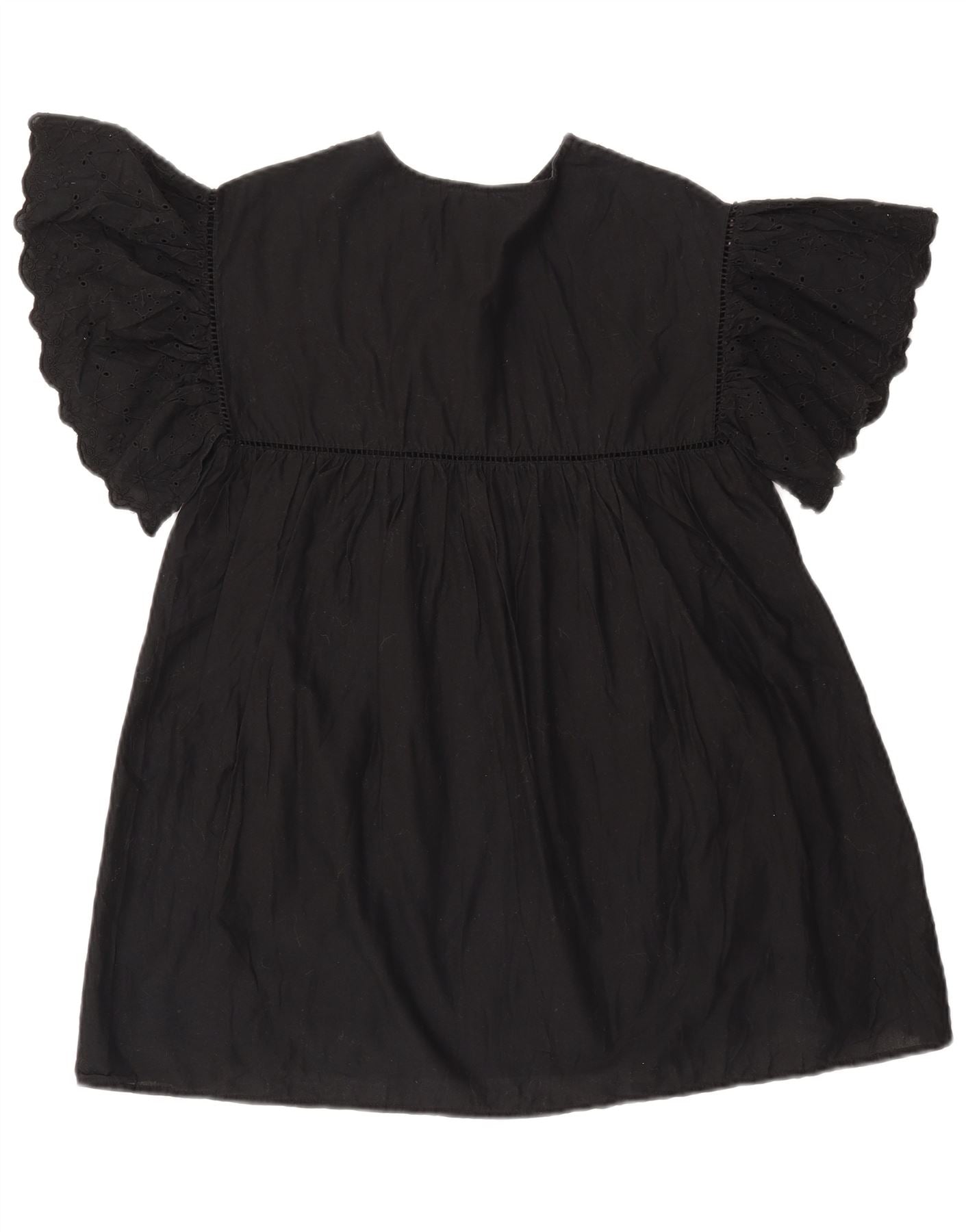 ZARA Girls Batwing A-Line Dress 9-10 Years Black Floral Cotton