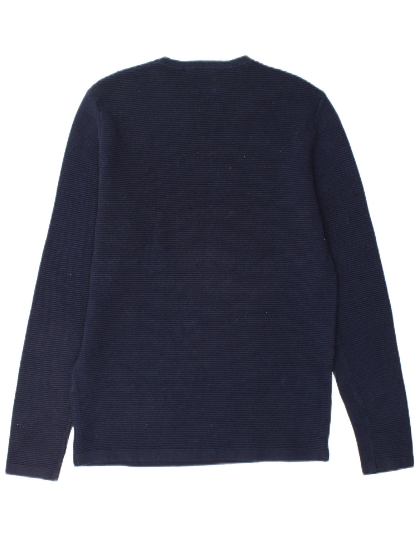 ZARA Mens Crew Neck Jumper Sweater Medium Navy Blue Colourblock Cotton