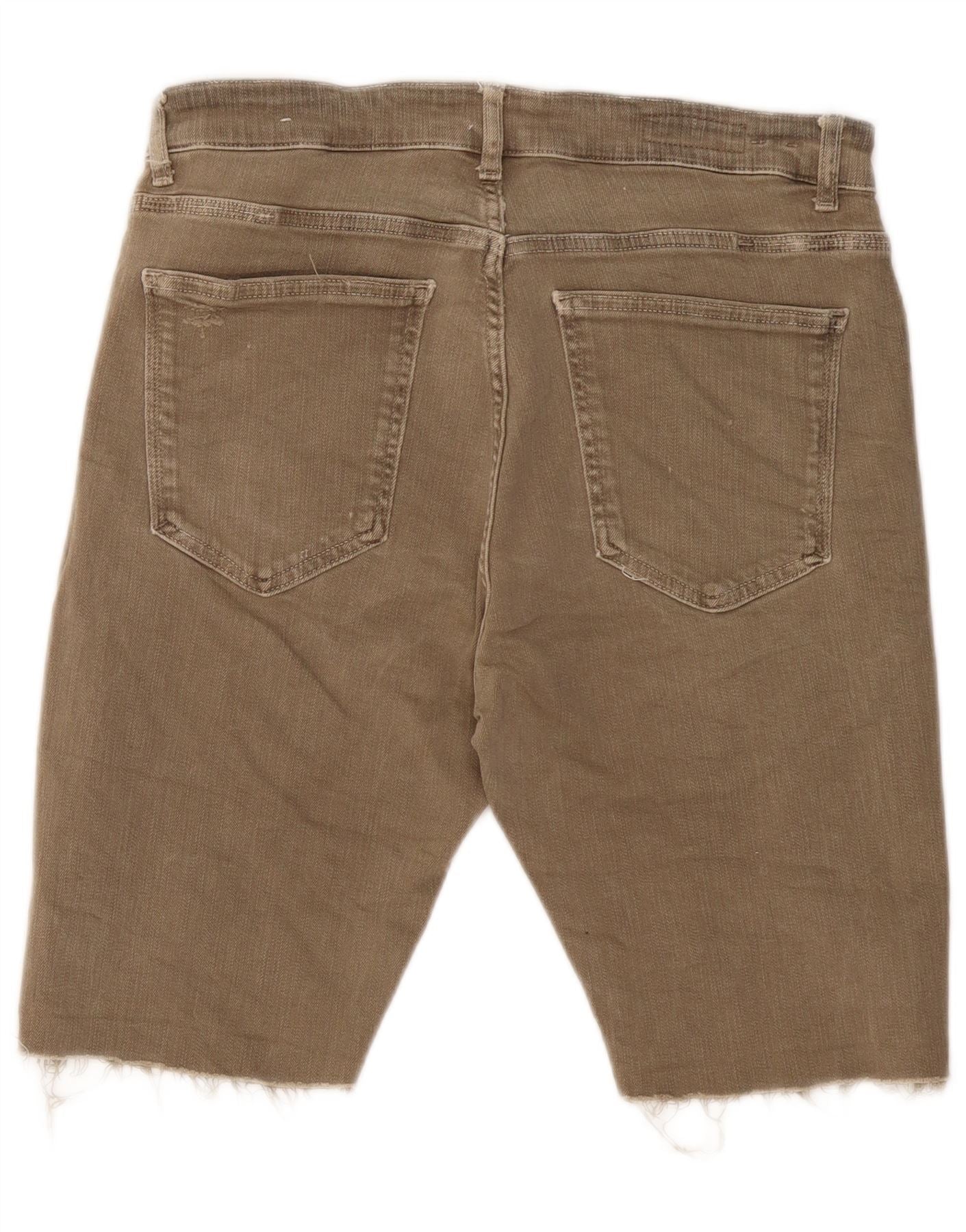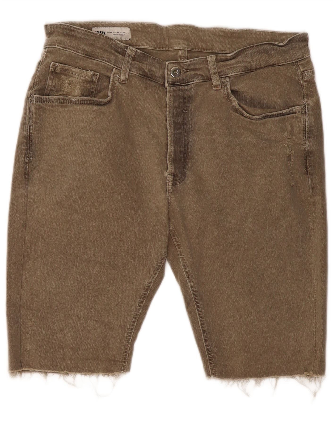 ZARA Mens Distressed Denim Shorts EU 46 XL W36 Khaki