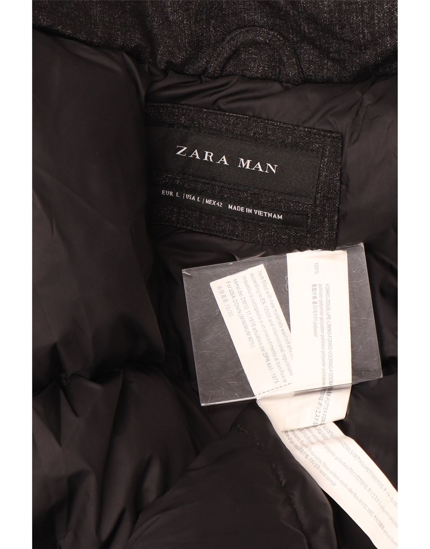 ZARA Mens Padded Coat UK 40 Large Black Polyester