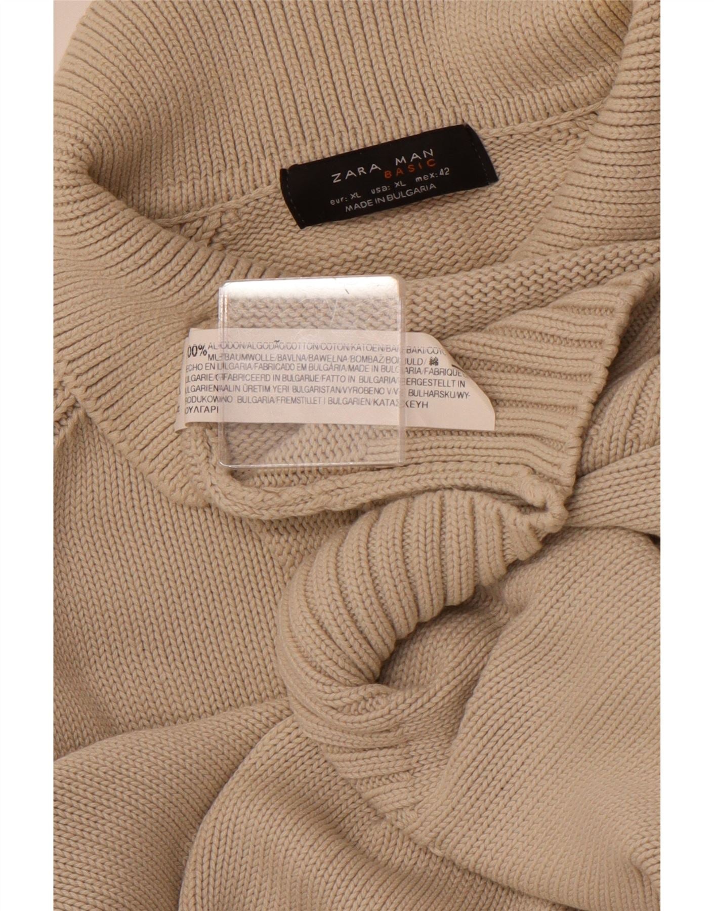 ZARA Mens Polo Neck Jumper Sweater XL Beige Cotton