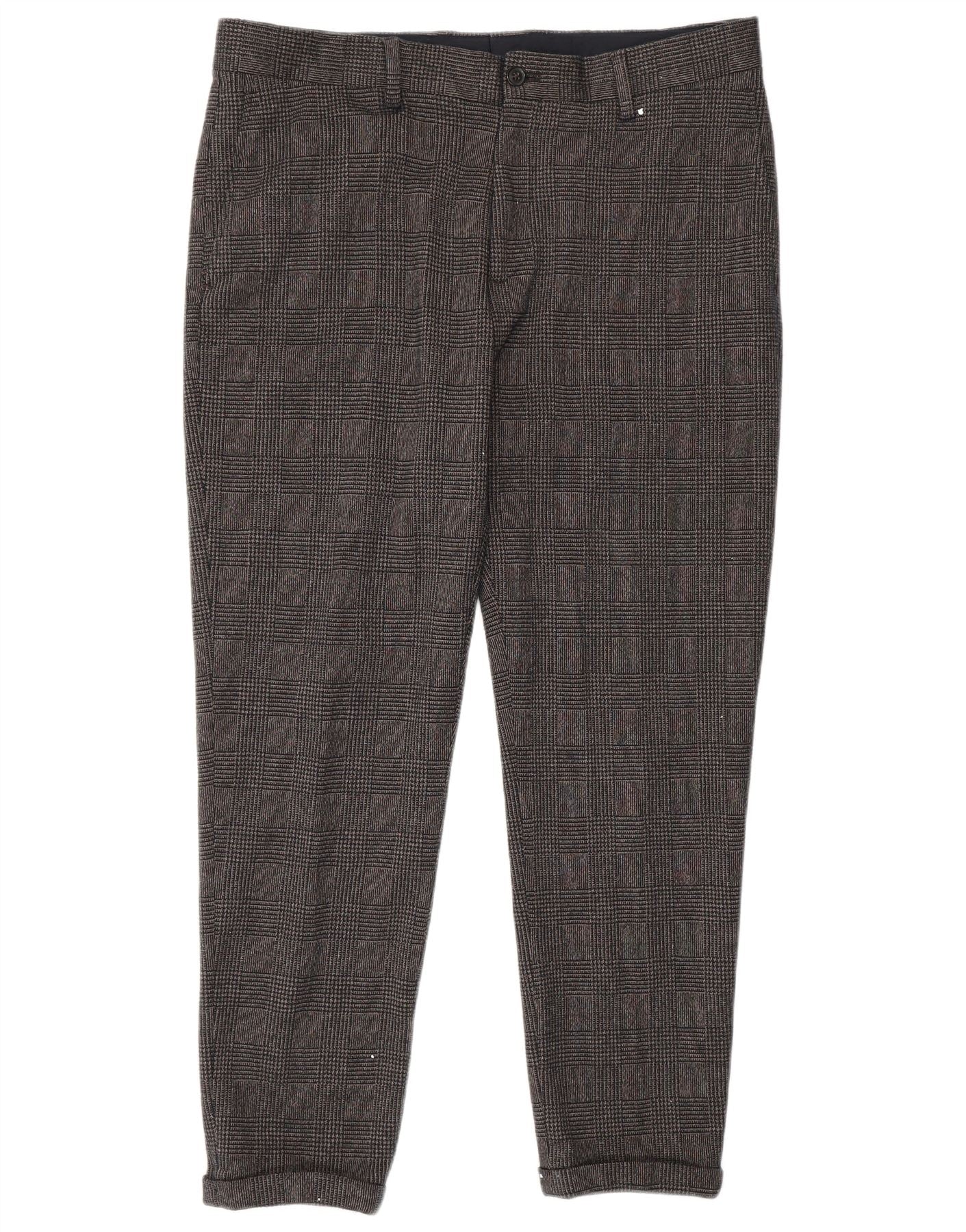 ZARA Mens Slim Chino Trousers EU 44 Large W34 L27 Grey Houndstooth
