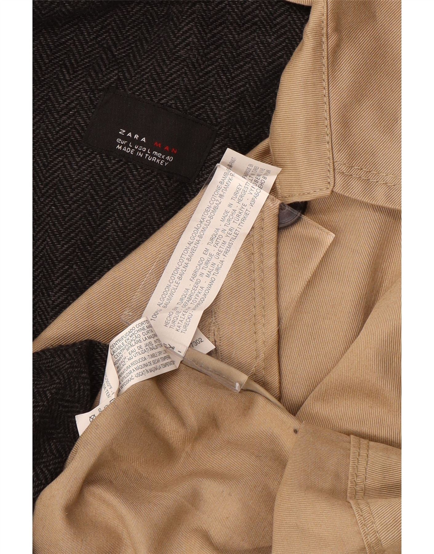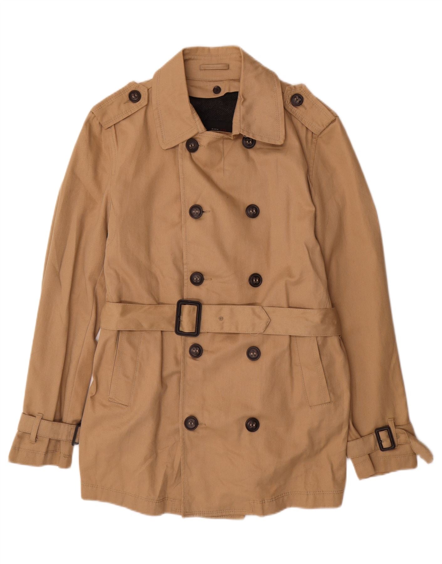 ZARA Mens Trench Coat UK 40 Large Beige Cotton