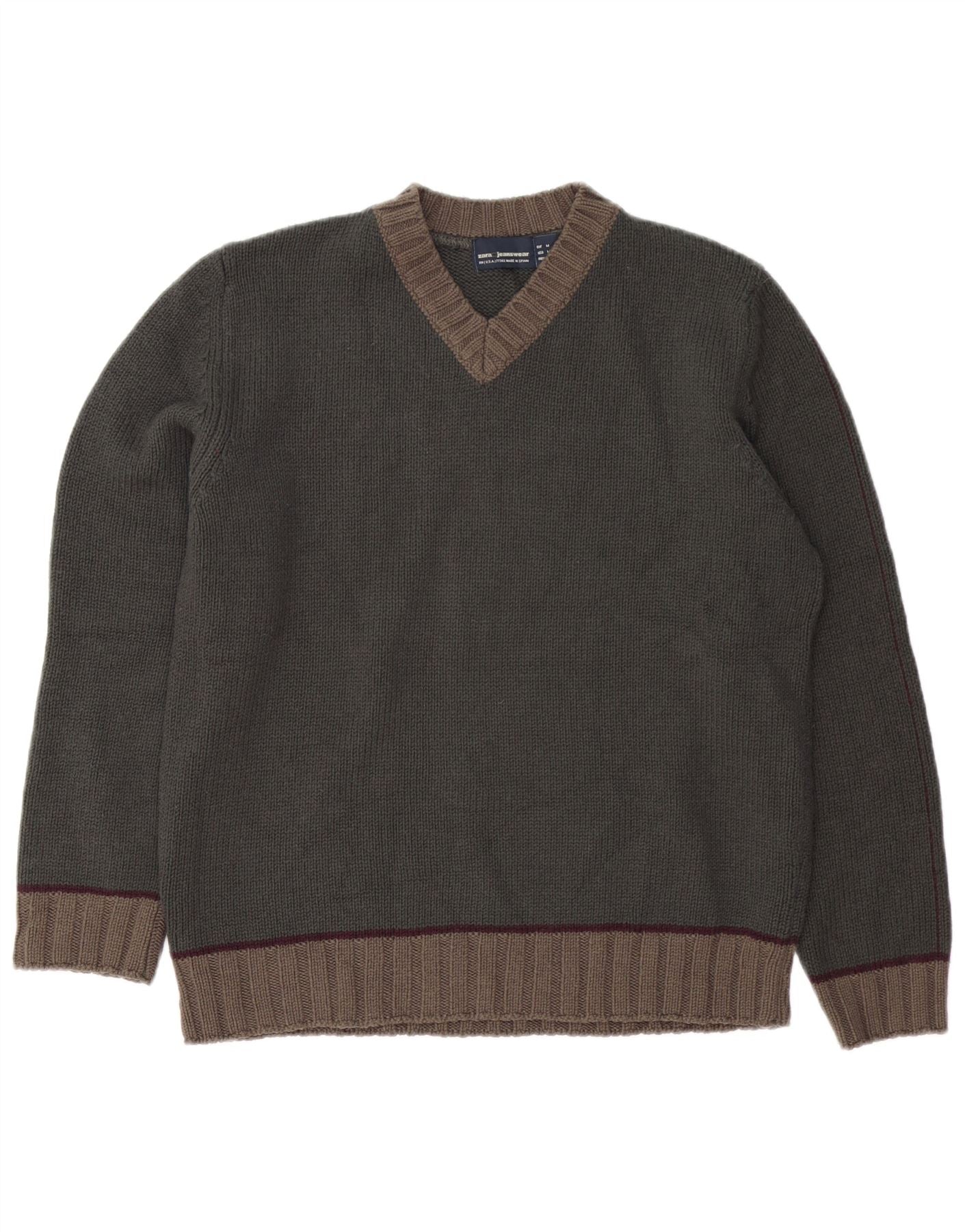 ZARA Mens V-Neck Jumper Sweater Medium Khaki Colourblock Acrylic