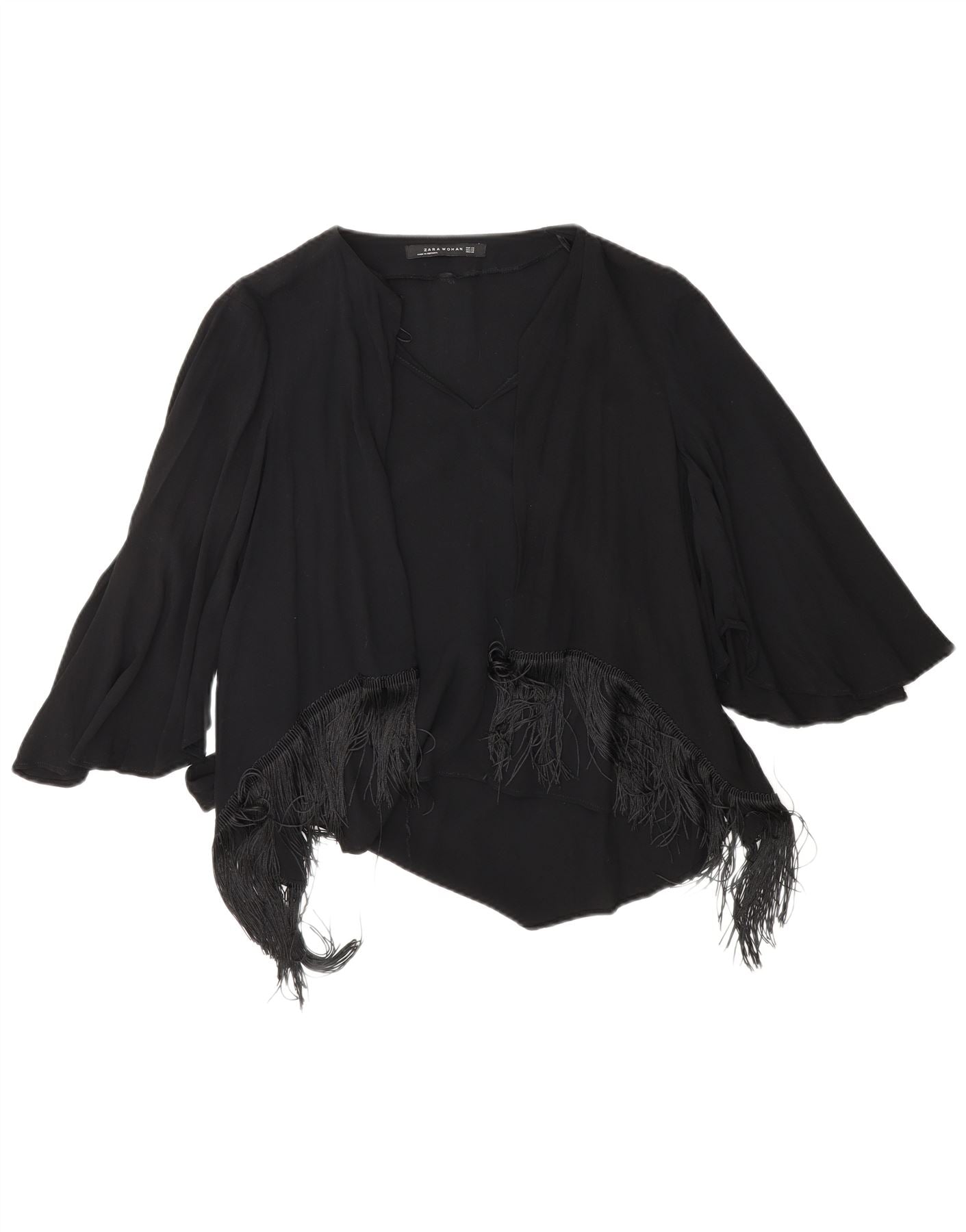 ZARA Womens 3/4 Sleeve Blouse Top UK 6 XS Black Viscose