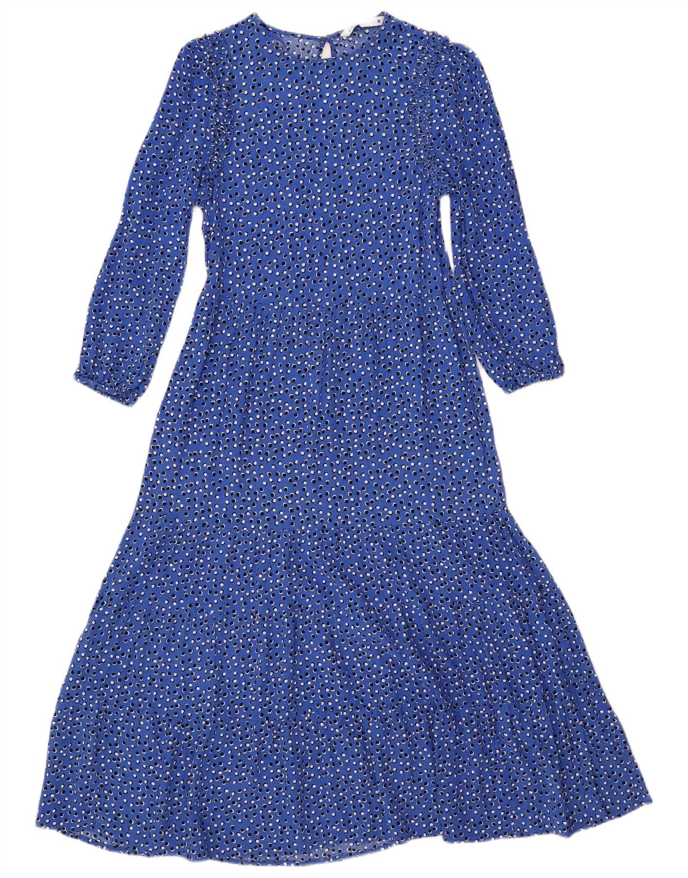 ZARA Womens 3/4 Sleeve Maxi Dress UK 6 XS Blue Spotted Viscose