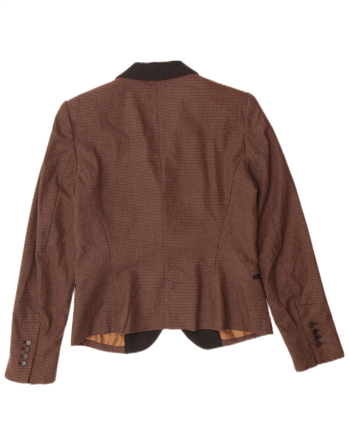 Zara Womens Basic Blazer Jacket UK 12 Medium Brown Houndstooth Classic