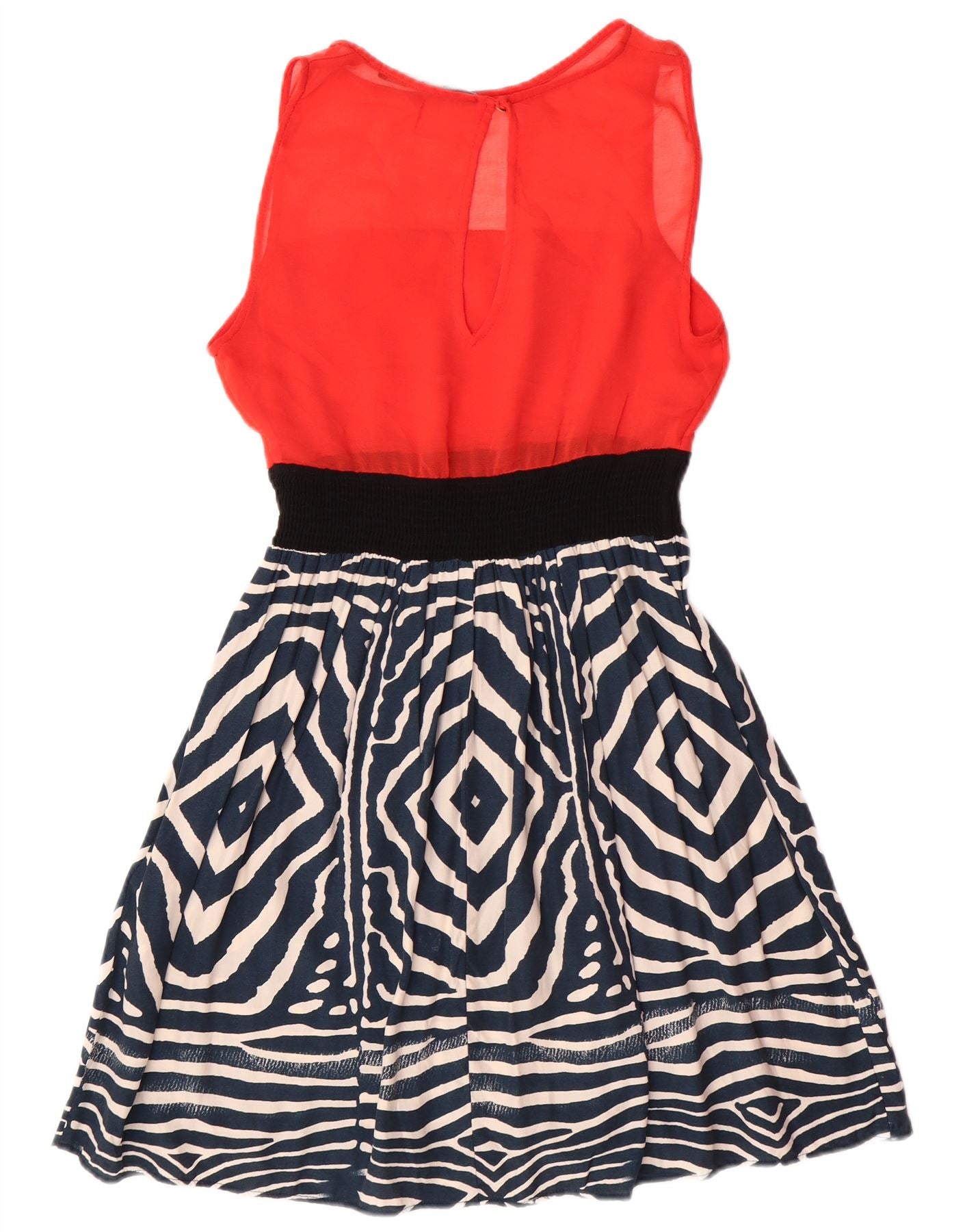 Zara Womens Basic Sleeveless A-Line Dress UK 12 Medium Red Geometric Modern