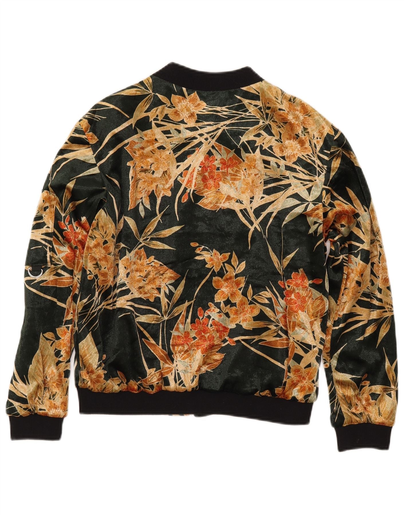 ZARA Womens Bomber Jacket UK 14 Medium Green Floral Cotton
