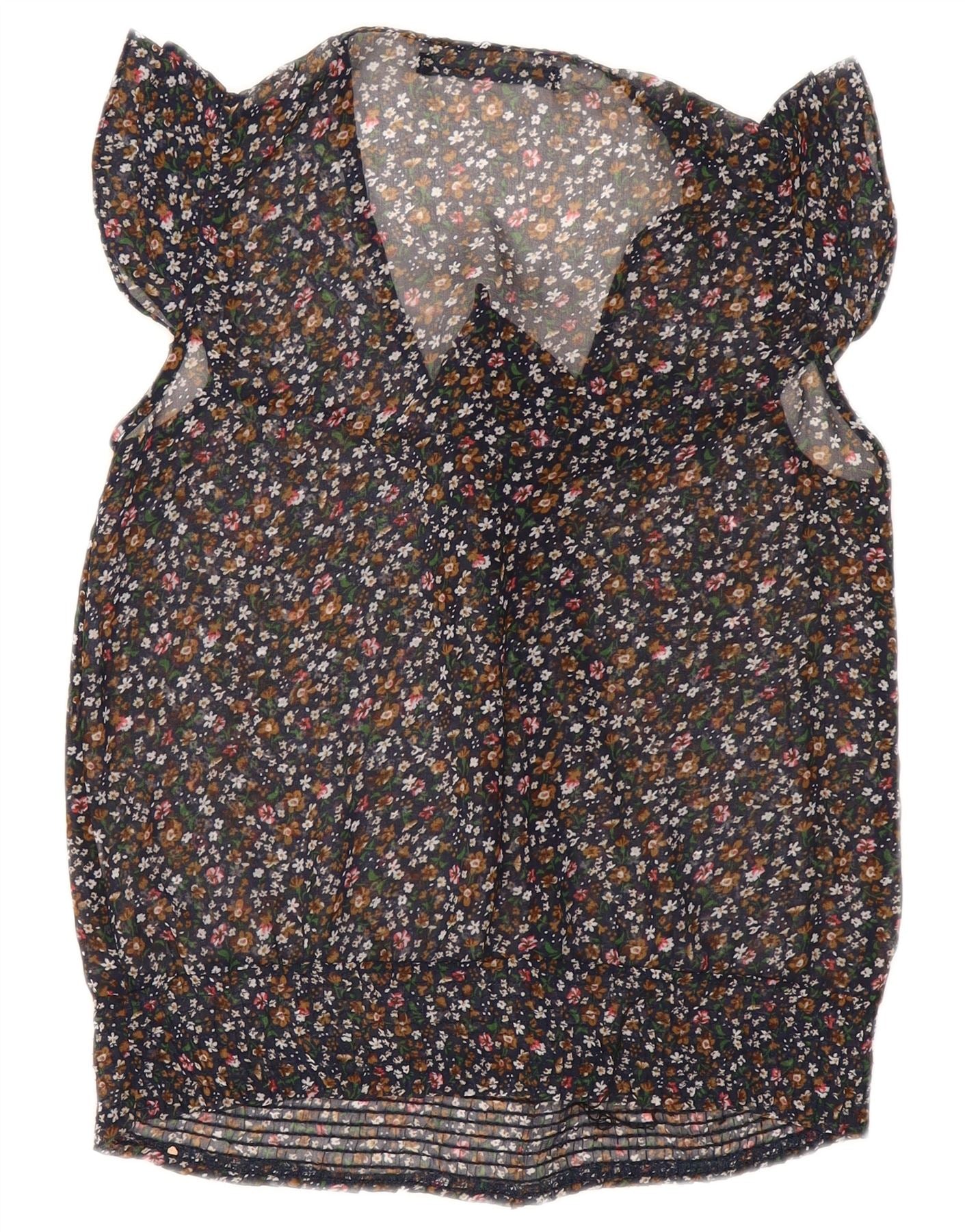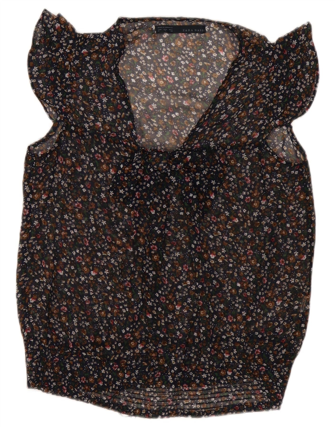 ZARA Womens Bow Tie Sleeveless See Through Top UK 10 Small Black Floral