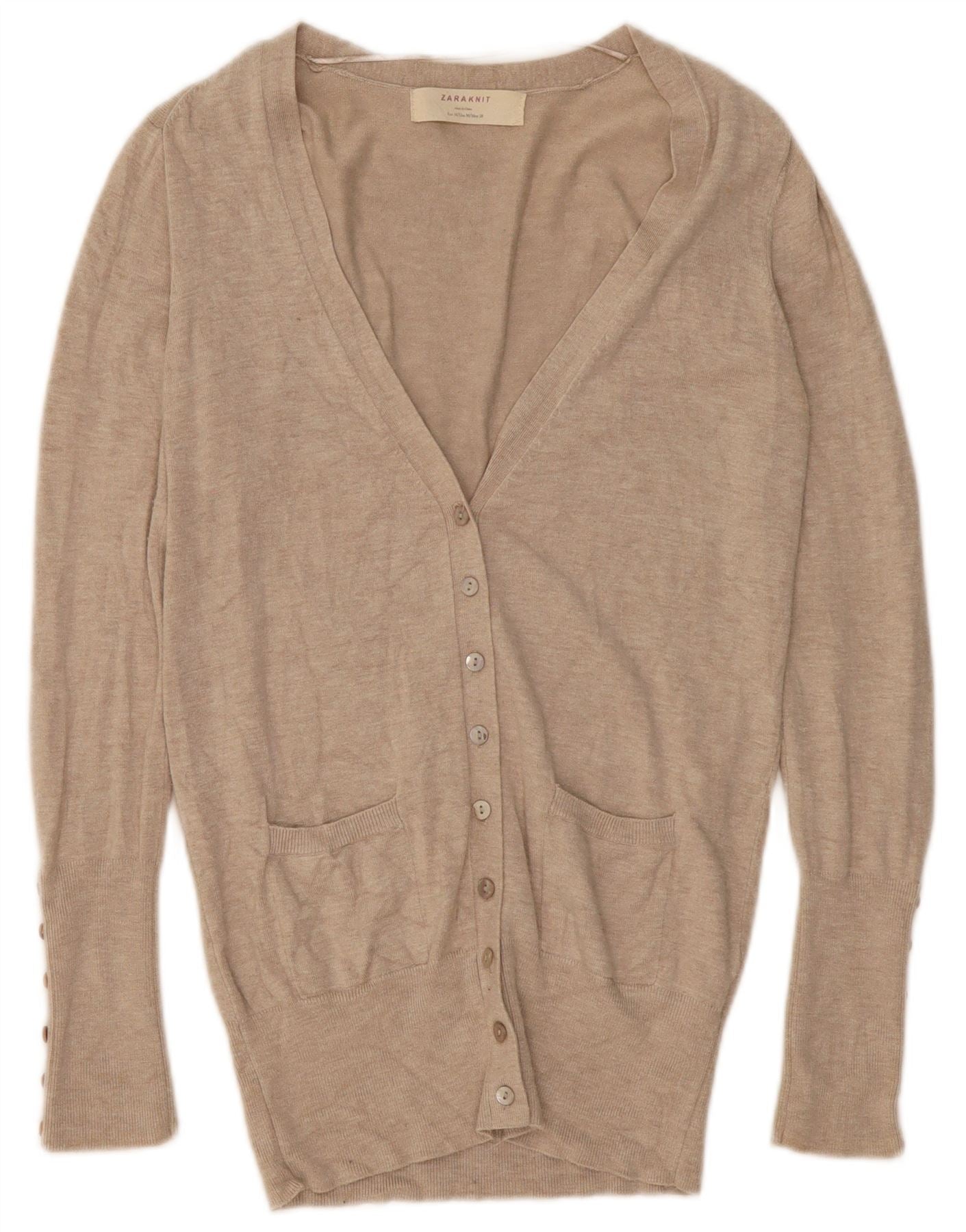 Zara Womens Cardigan Sweater UK 12 Medium Beige Rayon