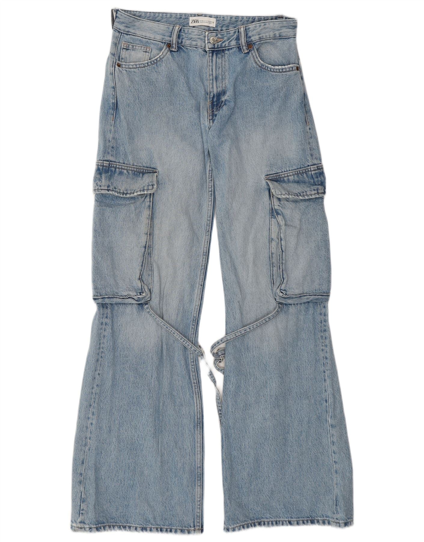 ZARA Womens Cargo Flared Jeans EU 36 XS W26 L32 Blue Cotton