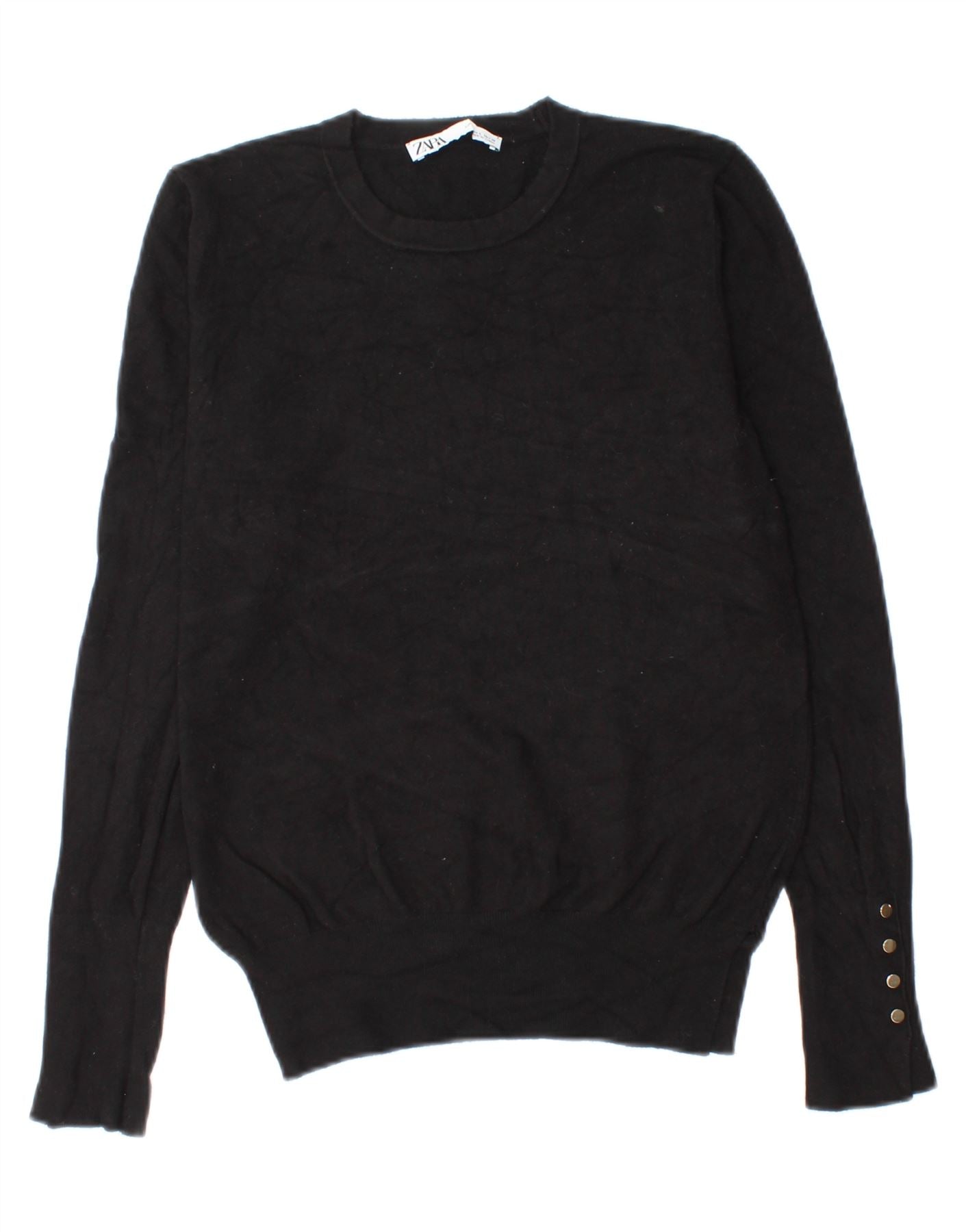 Zara Womens Crew Neck Jumper Sweater UK 14 Large Black
