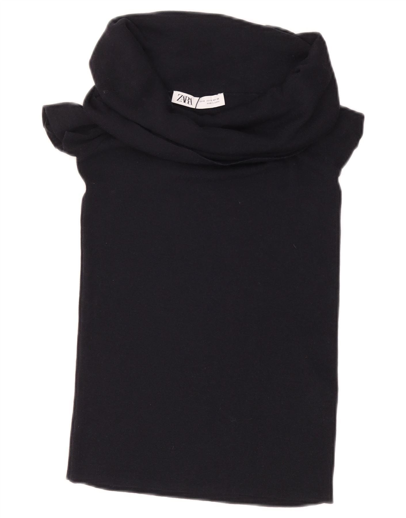 ZARA Womens Crop Blouse Top UK 12 Medium Black Viscose