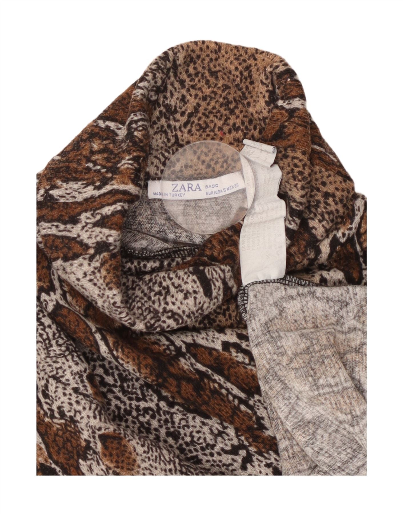ZARA Womens Crop Roll Neck Jumper Sweater UK 10 Small Brown Animal Print
