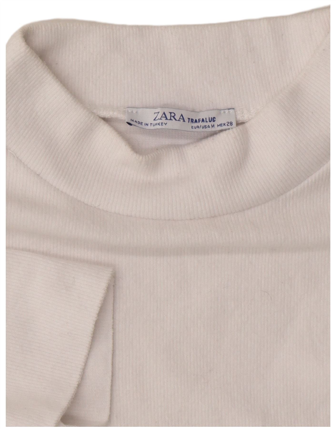 Zara Womens Crop Short Sleeve Turtle Neck Jumper Sweater UK 12 Medium White