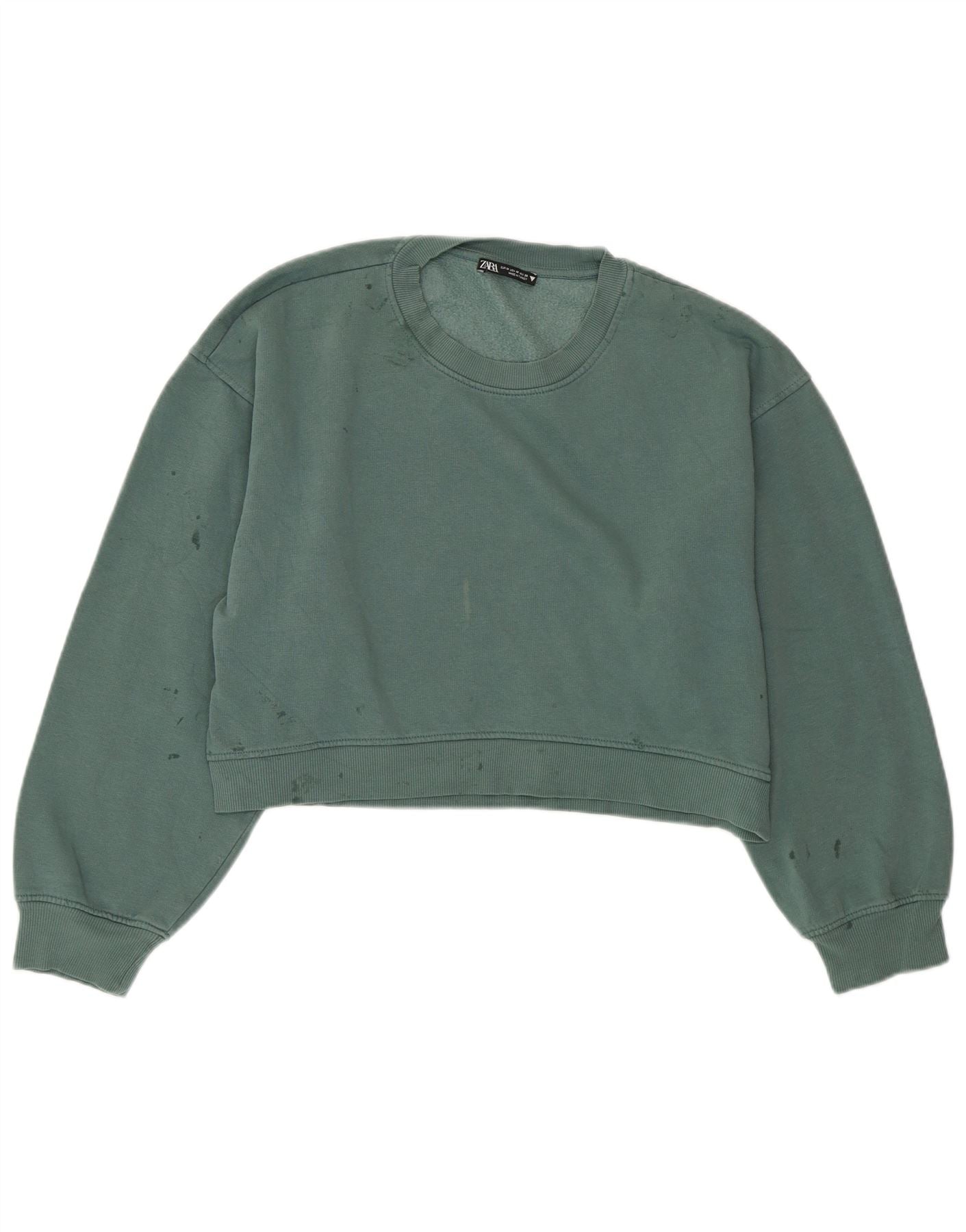 ZARA Womens Crop Sweatshirt Jumper UK 14 Medium Green