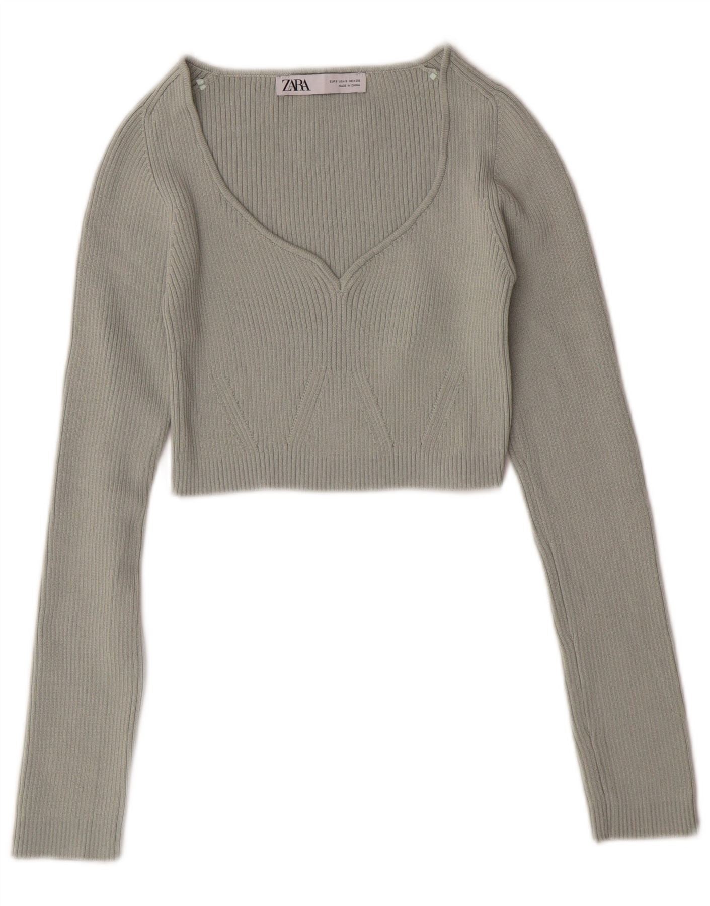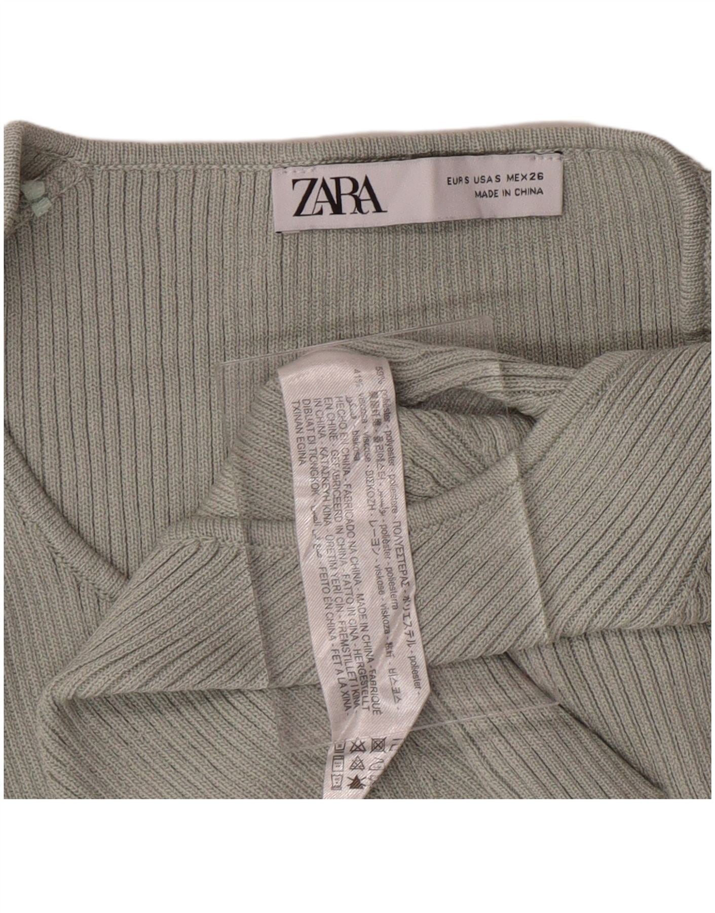 ZARA Womens Crop V-Neck Jumper Sweater UK 8 Small Green Polyester