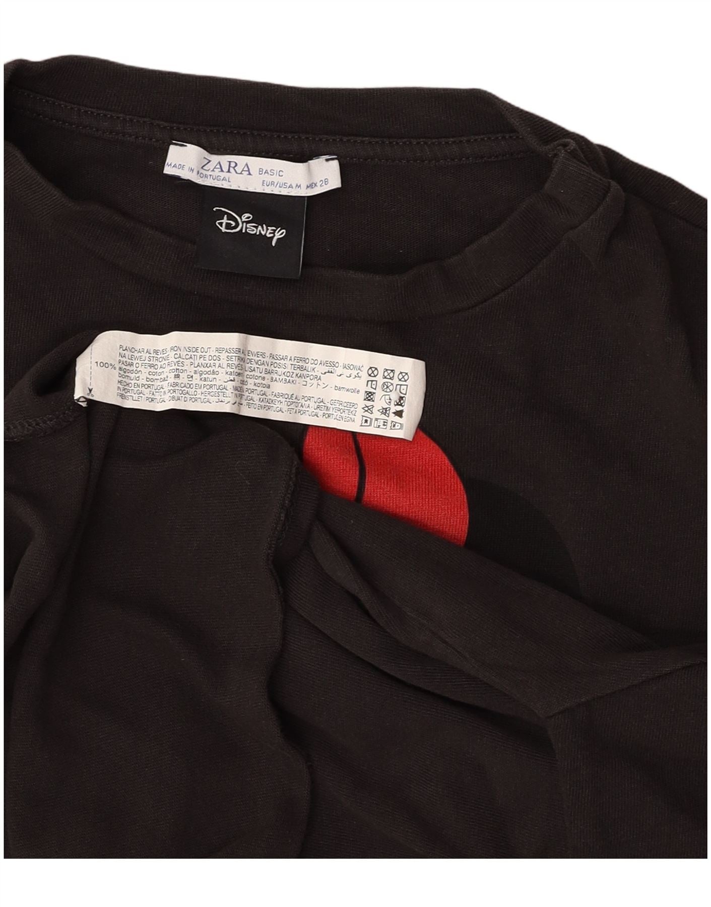 ZARA Womens Disney Crop Graphic T-Shirt Top UK 14 Medium Black Cotton