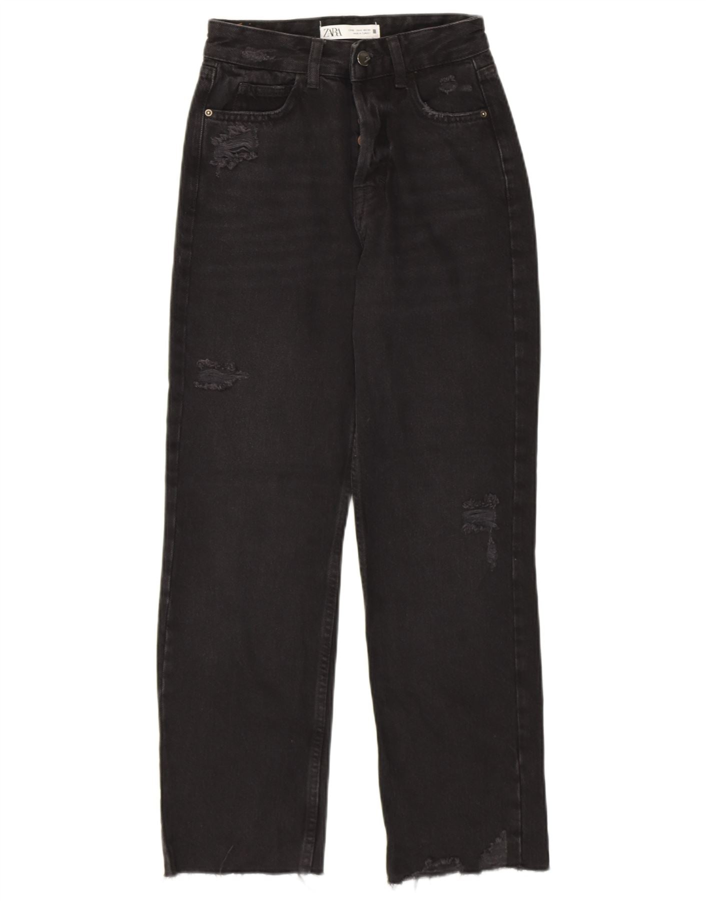 ZARA Womens Distressed Loose Jeans EU 32 2XS W22 L26 Black Cotton