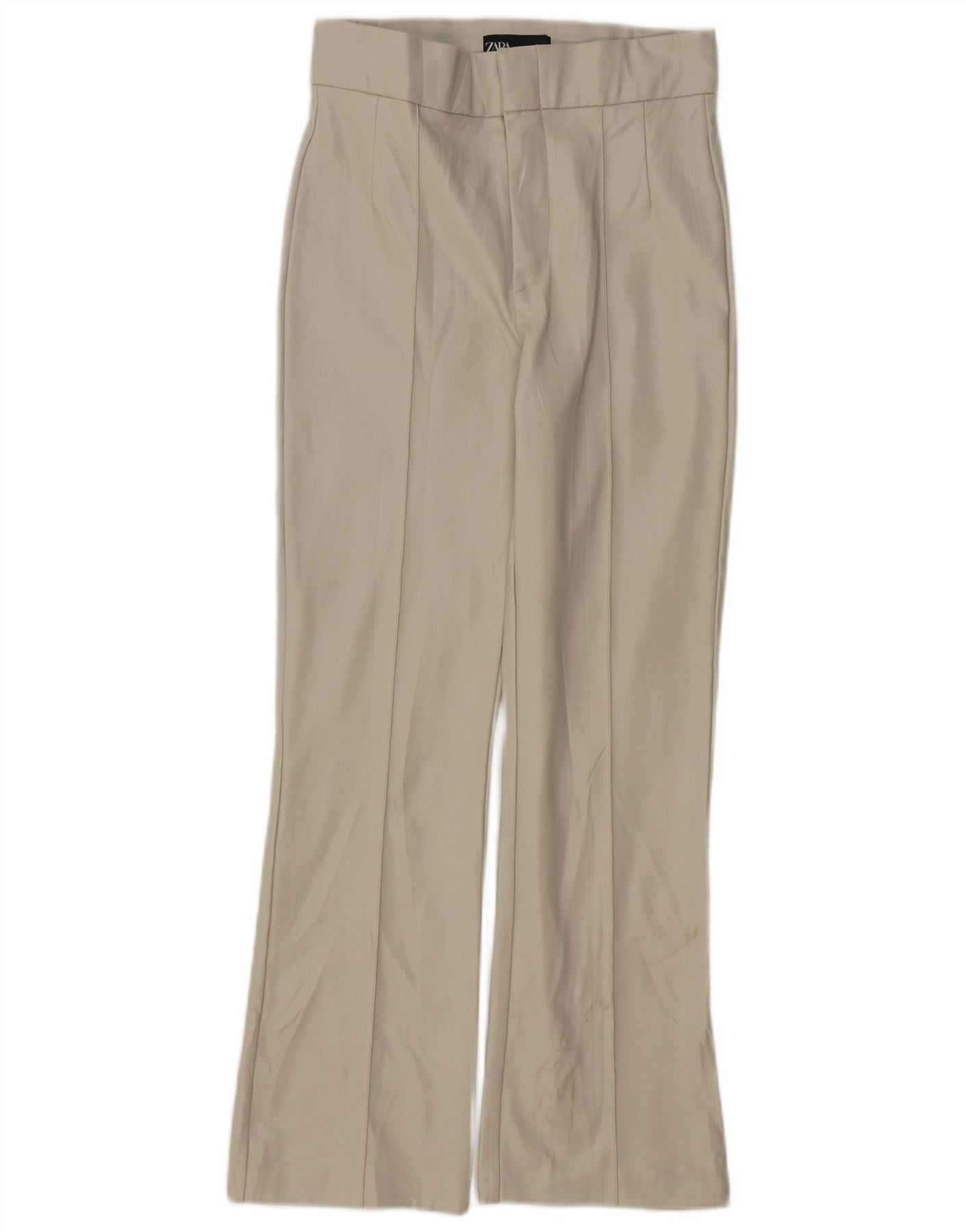 ZARA Womens Faux Leather Bootcut Trousers Small W26 L26 Beige Polyamide