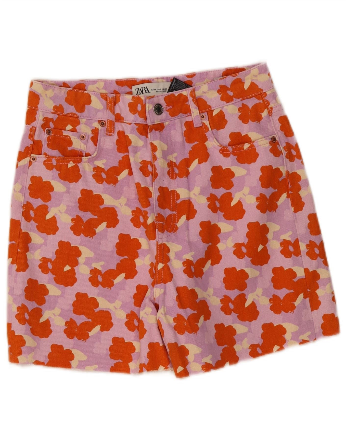 ZARA Womens High Waist Denim Shorts EU 36 Small W26 Multicoloured Floral