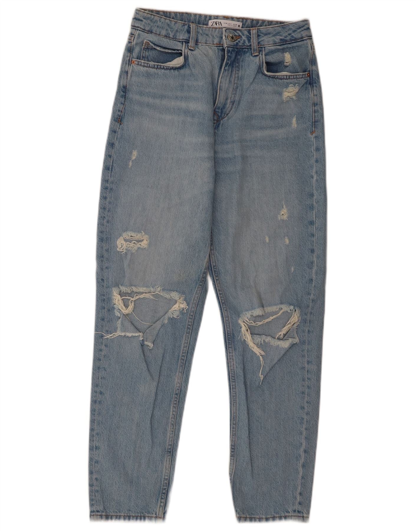 ZARA Womens High Waist Distressed Tapered Jeans EU 36 XS W26 L26 Blue