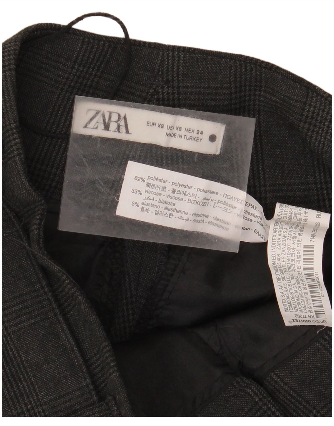 ZARA Womens High Waist Tapered Suit Trousers XS W24 L26 Grey Check