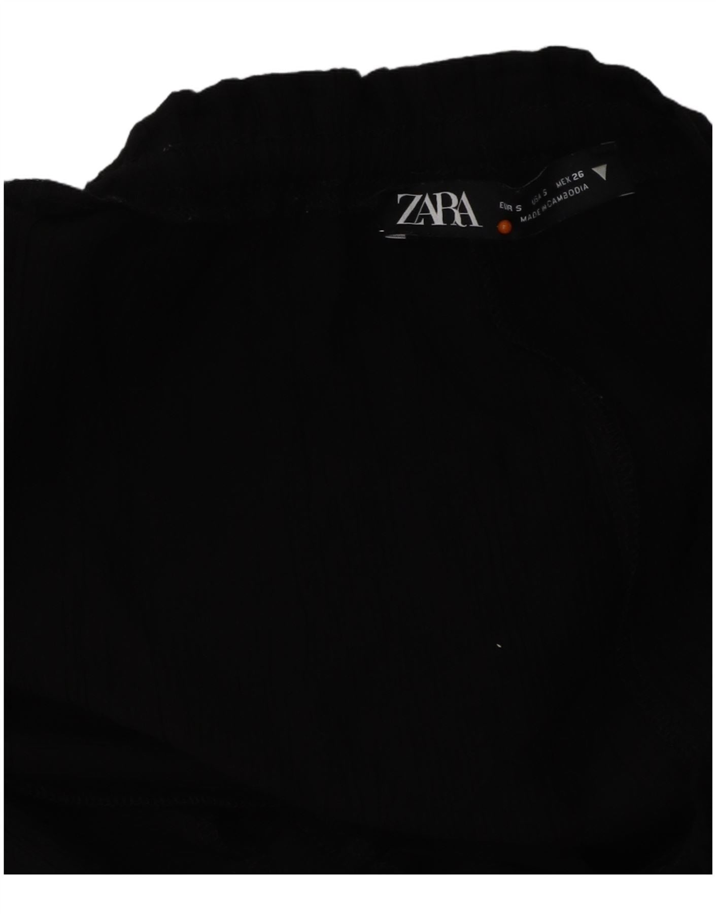 ZARA Womens High Waist Wide Leg Trousers UK 10 Small W26 L32 Black