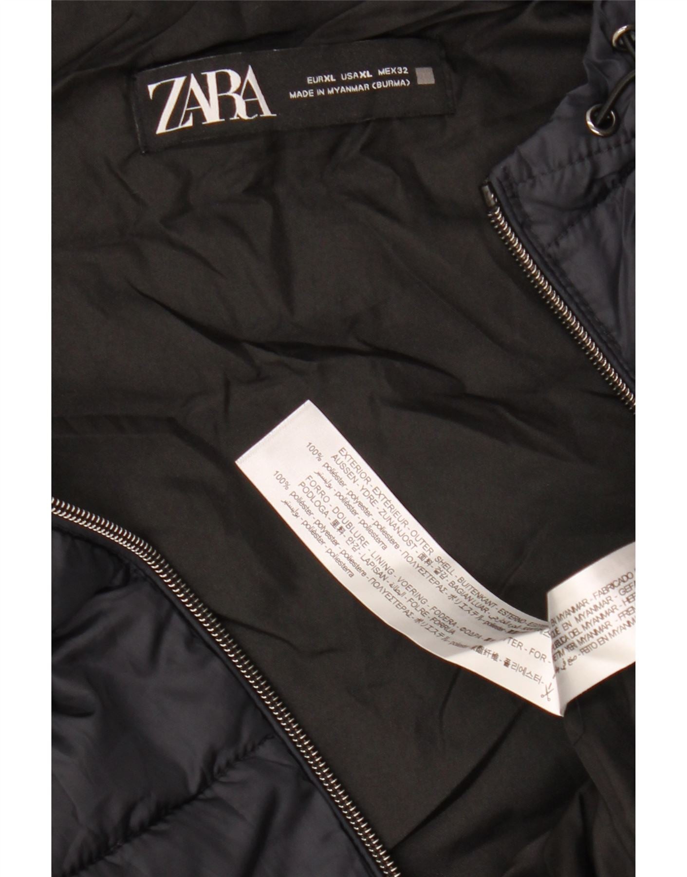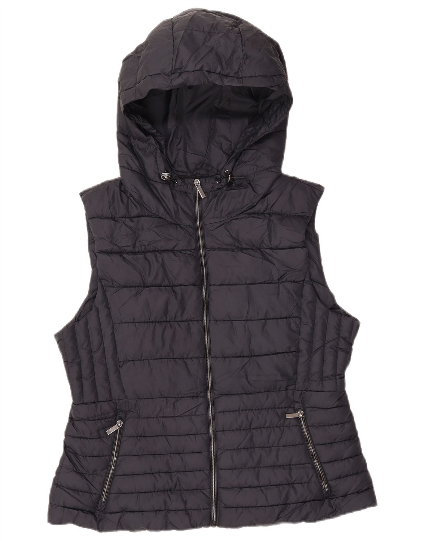 ZARA Womens Hooded Padded Gilet UK 18 XL Navy Blue Polyester
