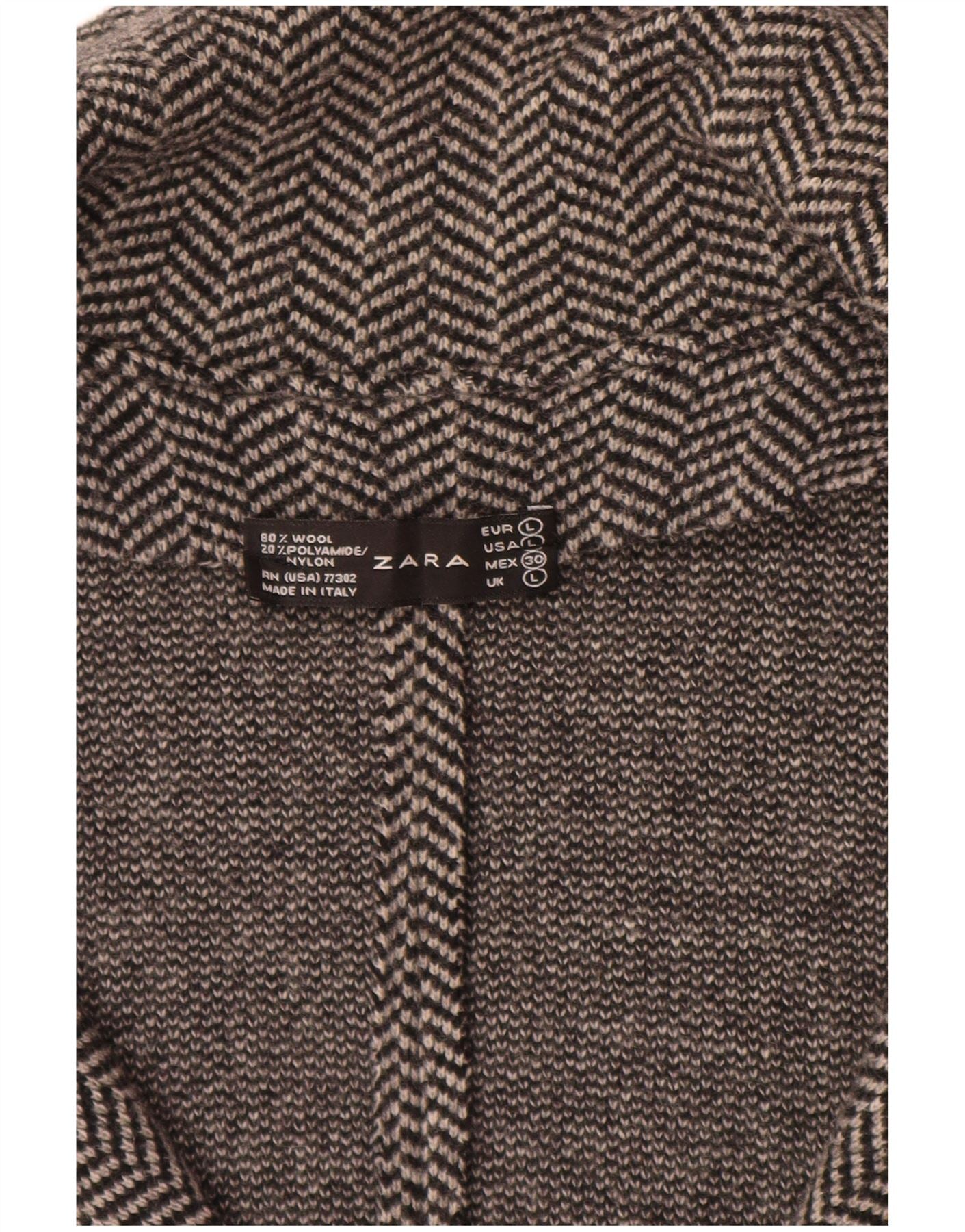 ZARA Womens Knit Blazer Jacket UK 14 Large Grey Herringbone