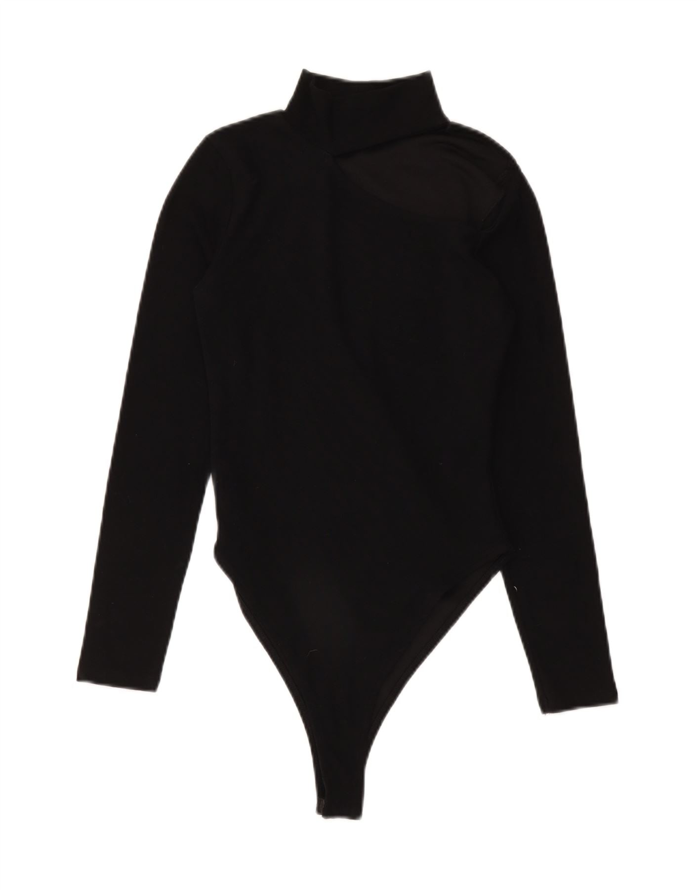 ZARA Womens Long Sleeve Bodysuit UK 12 Medium Black Polyester