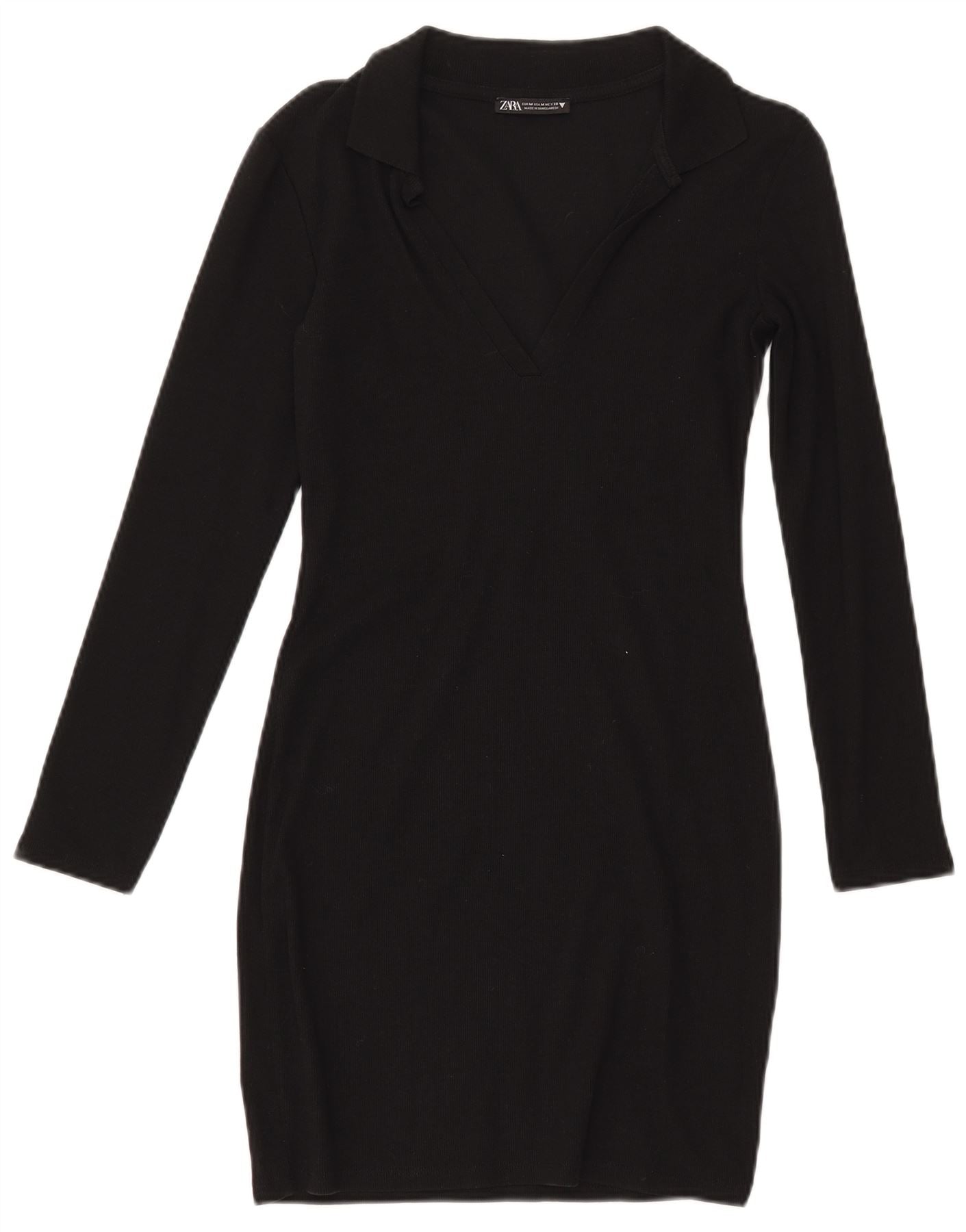 ZARA Womens Long Sleeve Polo Dress UK 12 Medium Black Cotton