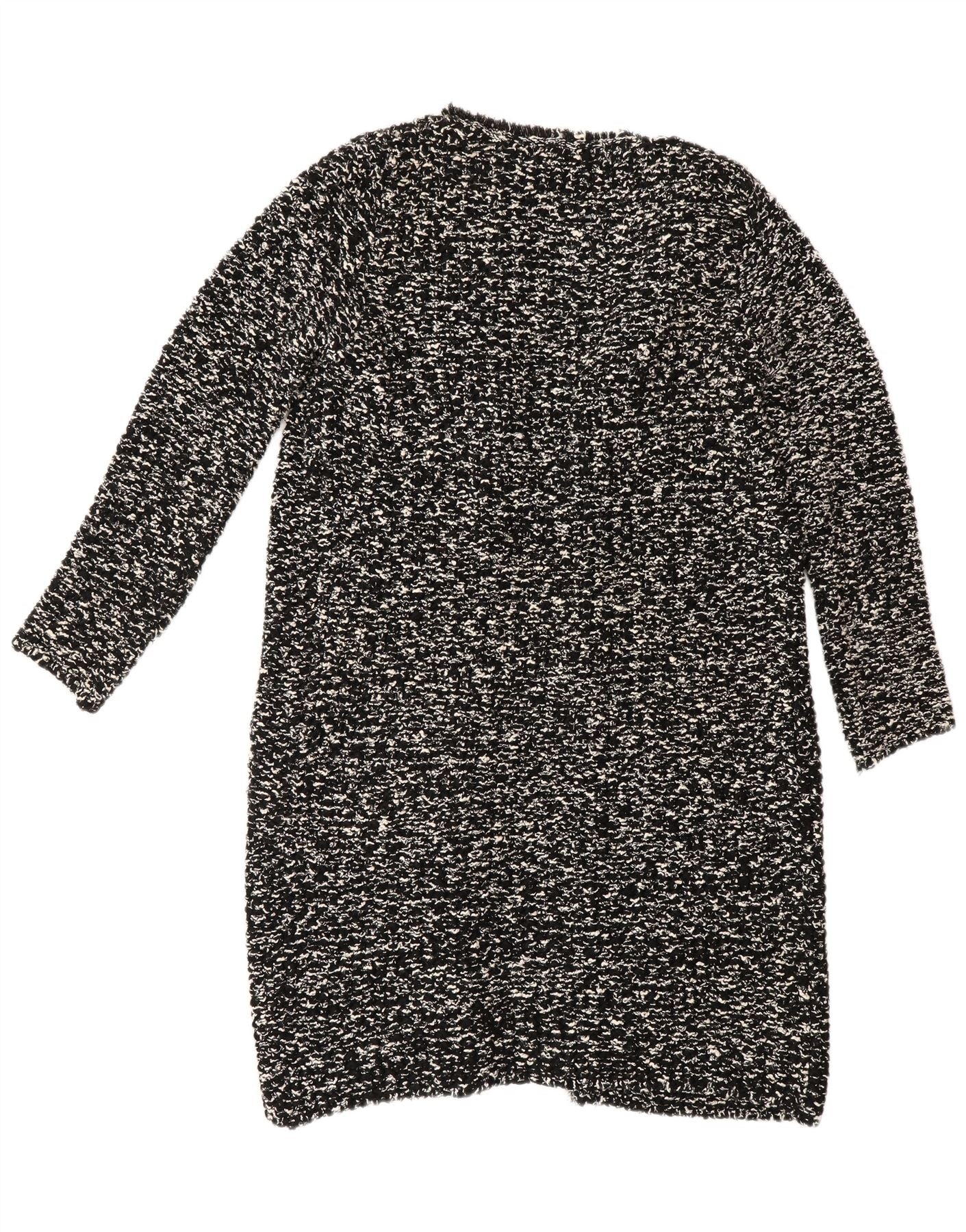 Zara Womens Longline Cardigan Sweater UK 14 Medium Black Flecked